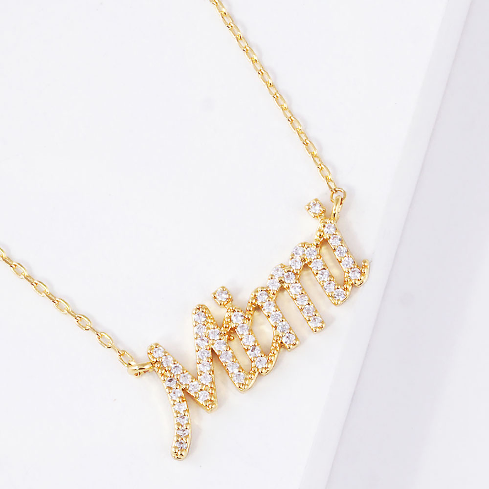 Gold Dipped CZ Mimi Message Pendant Necklace