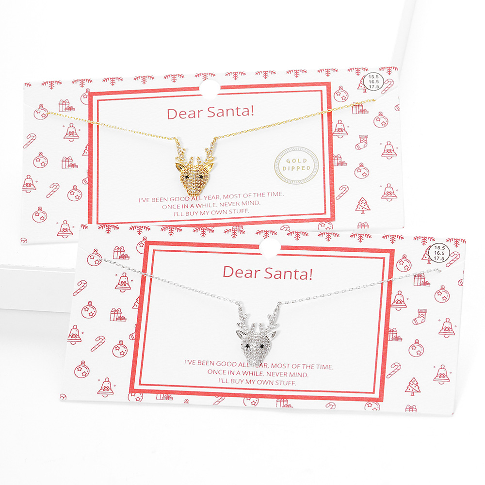 White Gold Dipped CZ Rudolph Pendant Necklace