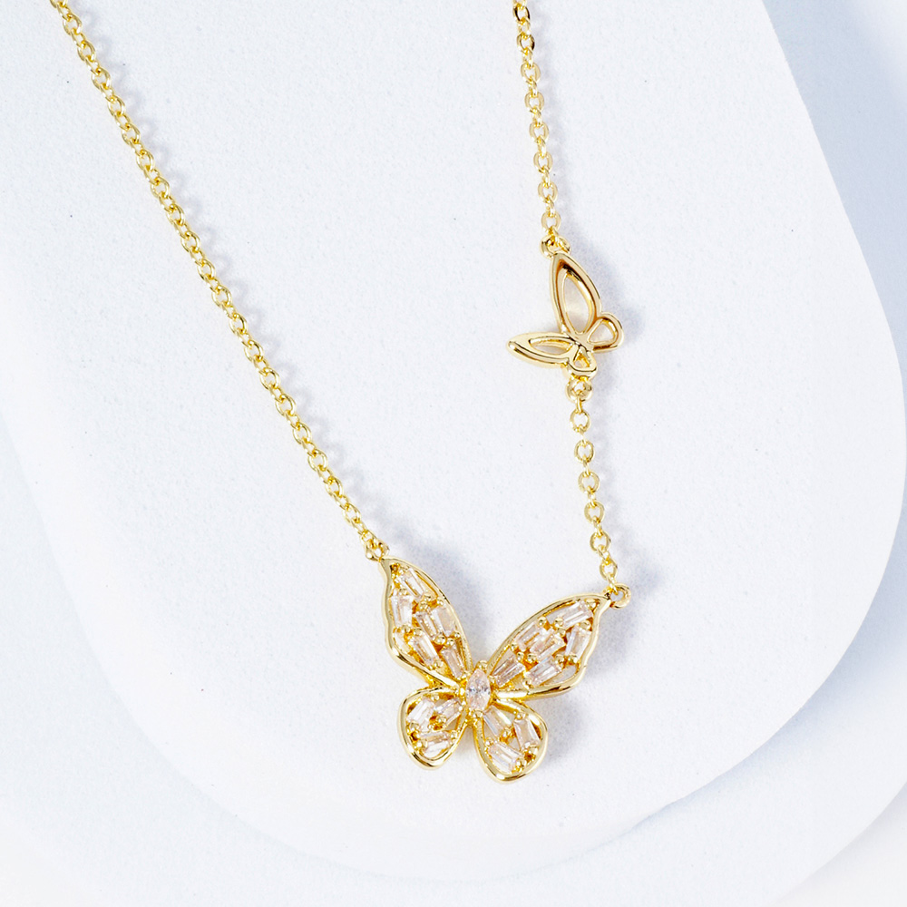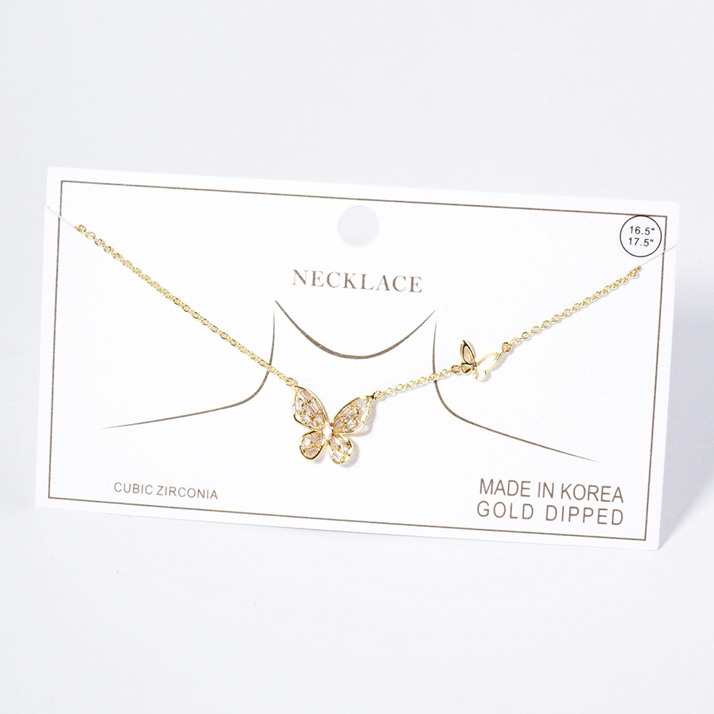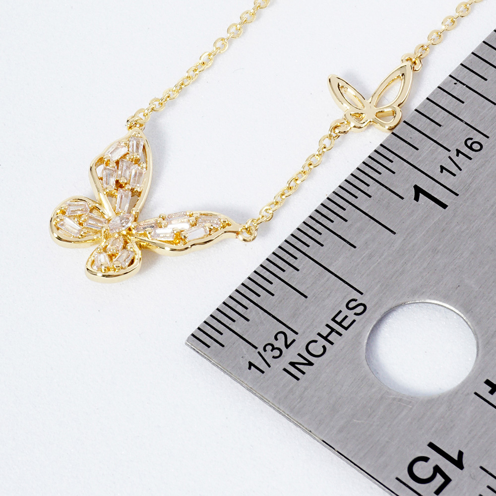 Gold Dipped CZ Stone Paved Butterfly Pendant Necklace
