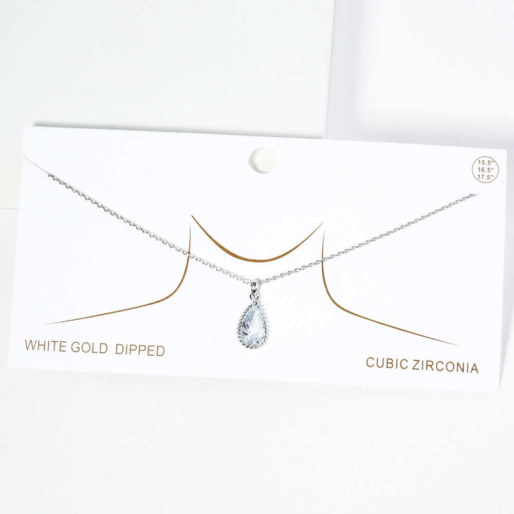 Gold Dipped CZ Teardrop Stone Pendant Necklace