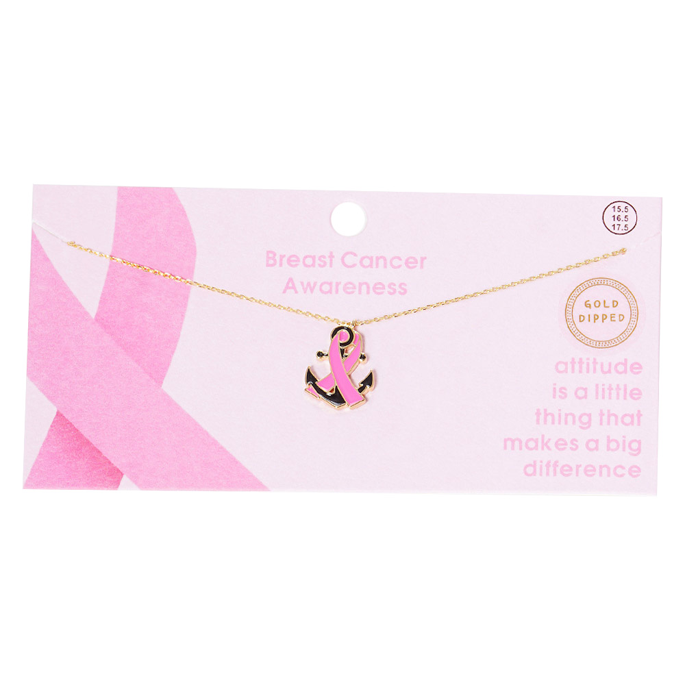 Details • Necklace Size : 15.5" + 2" L • Pendant Size : 0.6" X 0.75" • Show strength and support with this pink ribbon anchor necklace, combining the anchor’s symbol of stability with the ribbon’s message of hope and awareness. A meaningful piece that honors resilience, making it a thoughtful gift or keepsake for courage and love. • Lead and Nickel Compliant • Made In Korea • Gold Dipped