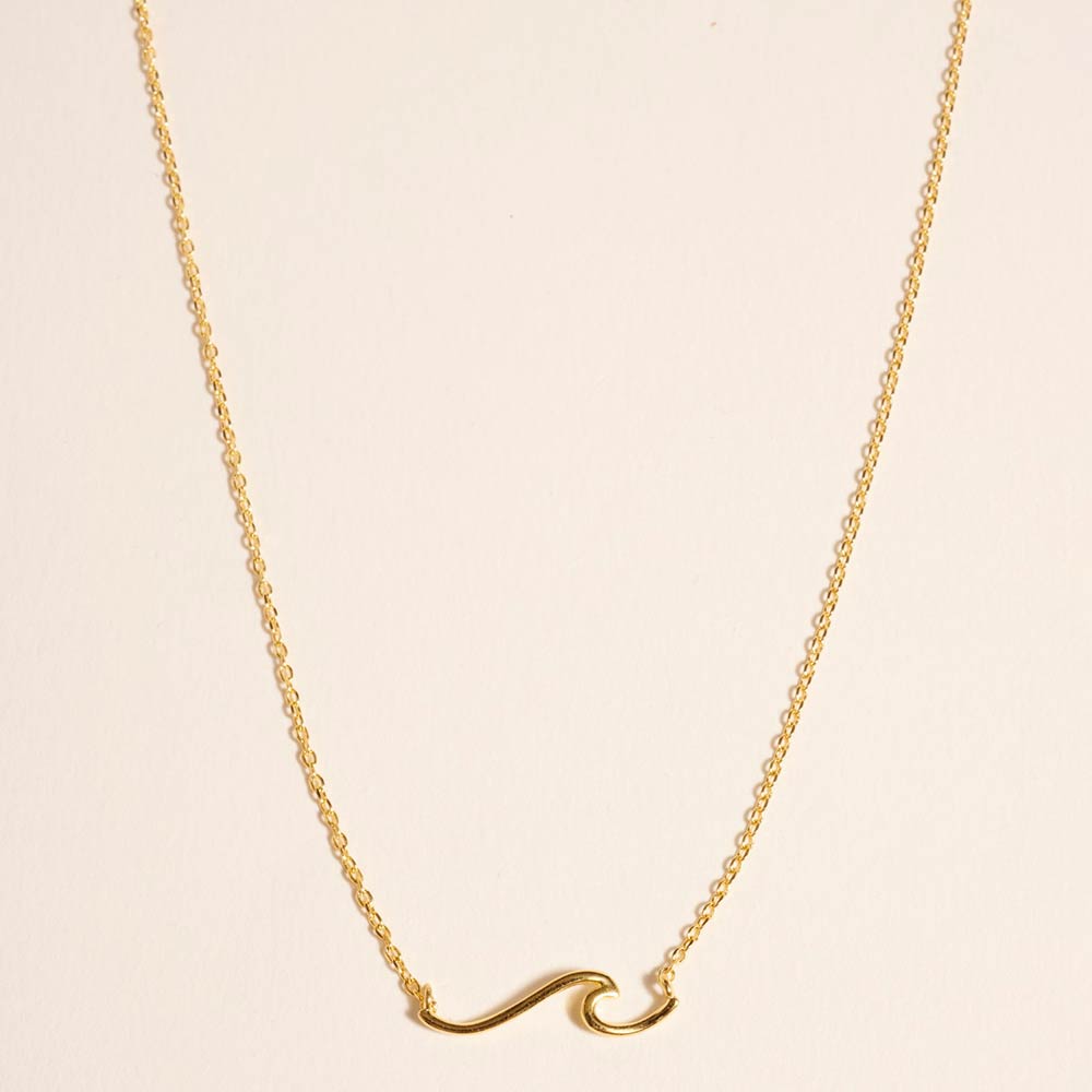 Details • Necklace Size : 16" + 2" L • Pendant Size : 0.7" X 0.25" • Minimal wave symbol pendant necklace inspired by movement, freedom, and personal flow. Designed as an everyday meaningful accessory, this necklace is ideal for gifting, layering, or adding a relaxed coastal vibe to boutique jewelry collections focused on symbols, travel, and inspiration. • Gold Dipped • Hypoallergenic • Made In Korea