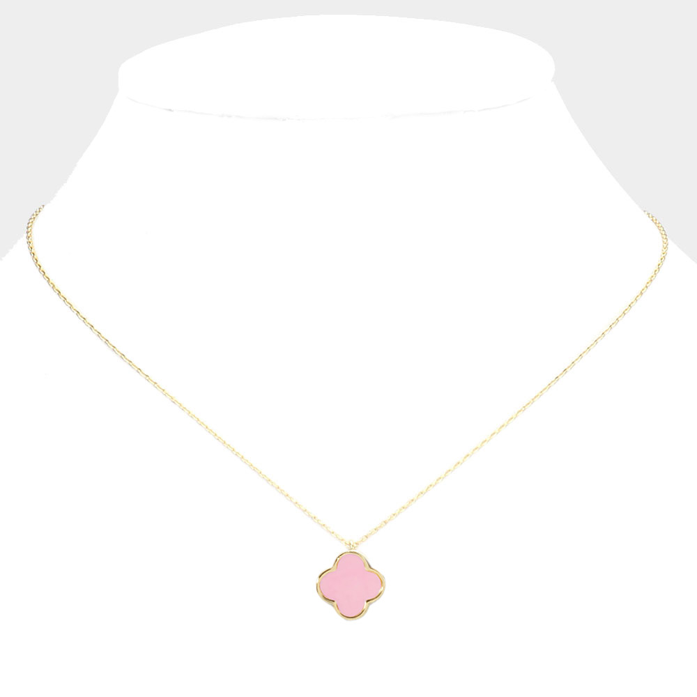 Gold Dipped Stone Paved Quatrefoil Pendant Necklace