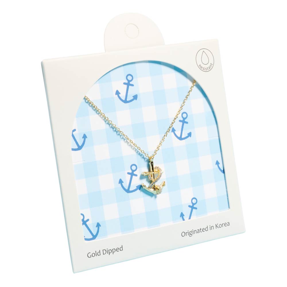 Details • Necklace Size : 16" + 2" L • Pendant Size : 0.4" X 0.6" • Anchor symbol pendant necklace representing stability, hope, and guidance. Designed as a meaningful everyday accessory, this necklace is ideal for gifting, layering, or coastal-inspired collections. A timeless symbol piece suited for boutique jewelry displays and travel-themed assortments. • Gold Dipped • Hypoallergenic • Made In Korea