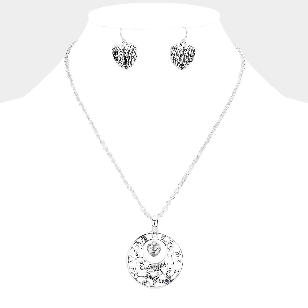 Round Stone Pointed Antique Metal Heart Dangle Earrings