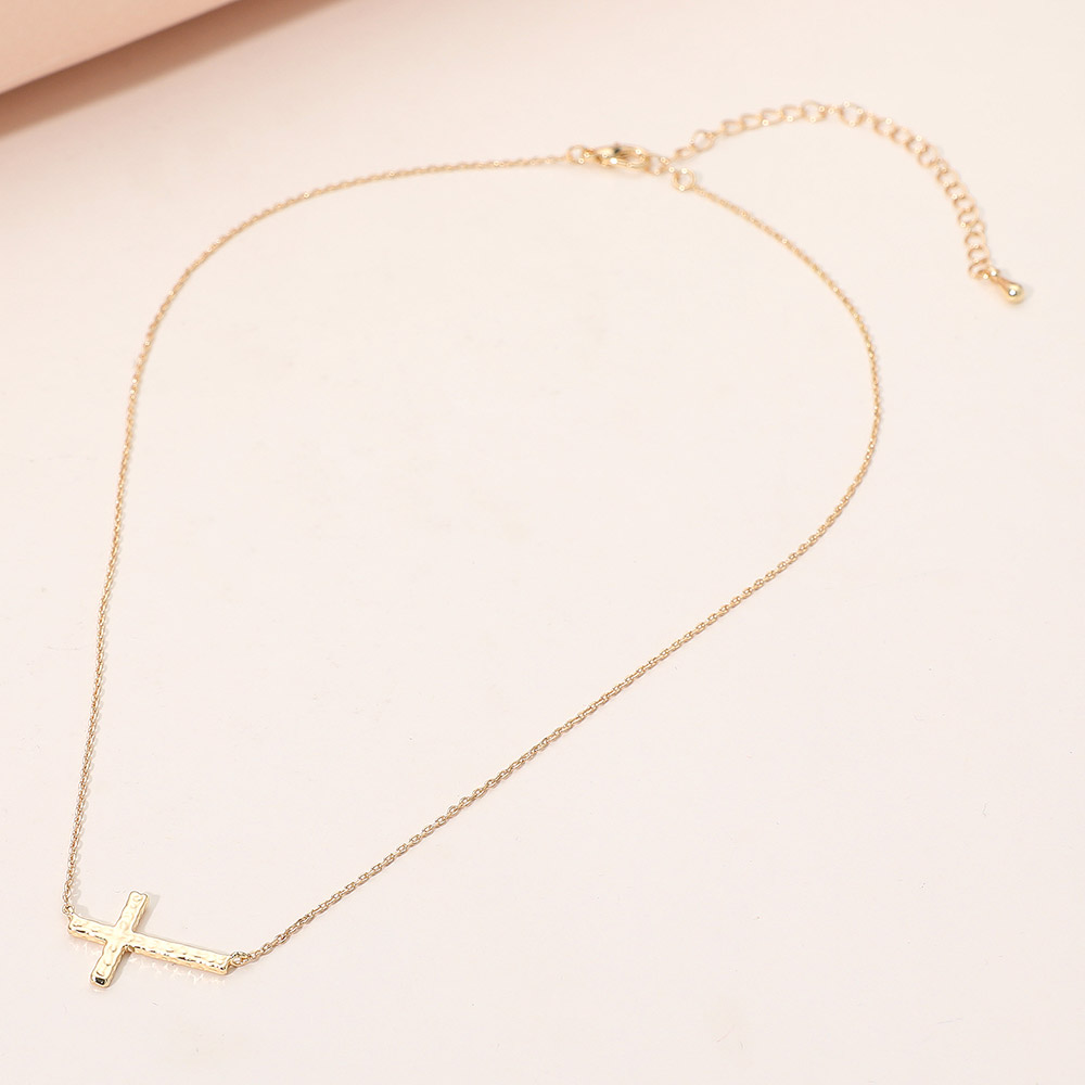 • A modern take on a timeless symbol, this sideways cross pendant necklace adds subtle elegance and meaning to any look. Its sleek design and delicate chain make it perfect for layering or wearing alone, offering a refined statement of faith and contemporary sophistication.