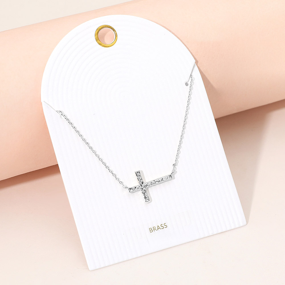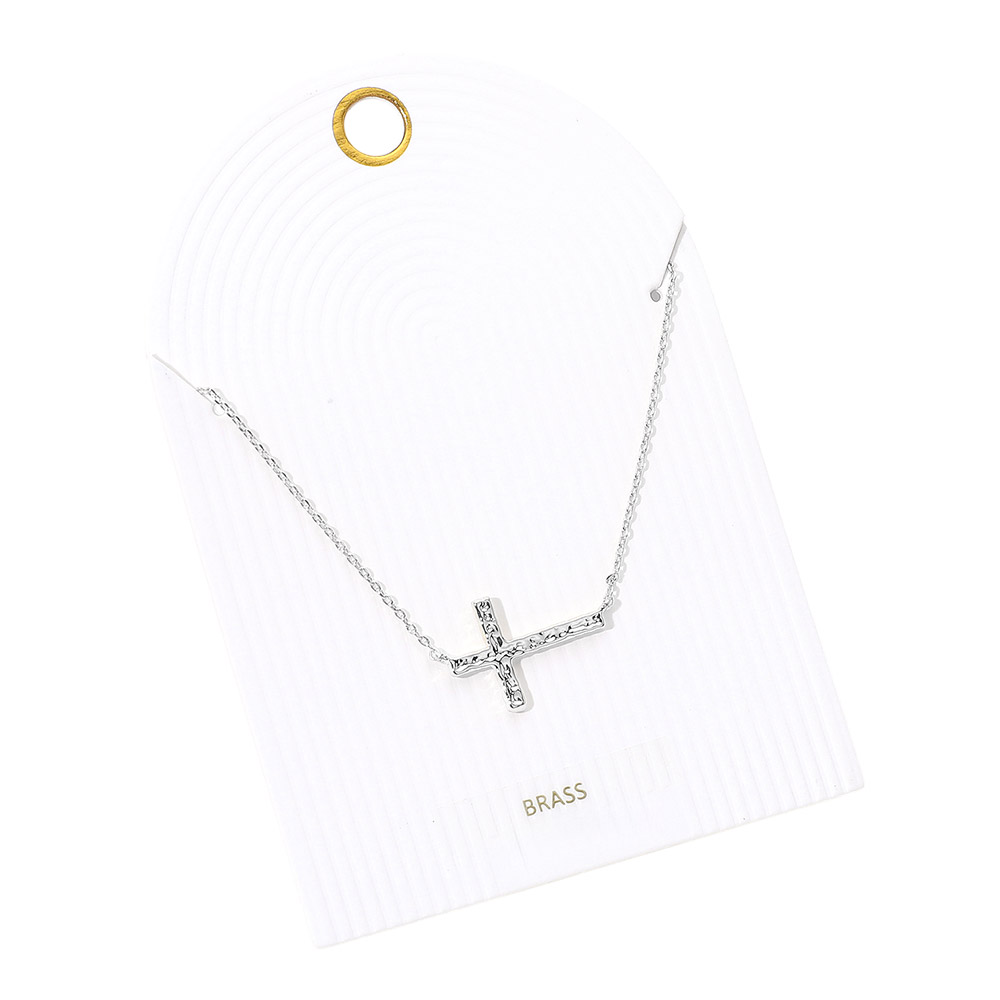 Hammered Metal Sideways Cross Pendant Necklace Hammered Metal Sideways Cross Pendant Necklace Hammered Metal Sideways Cross Pendant Necklace