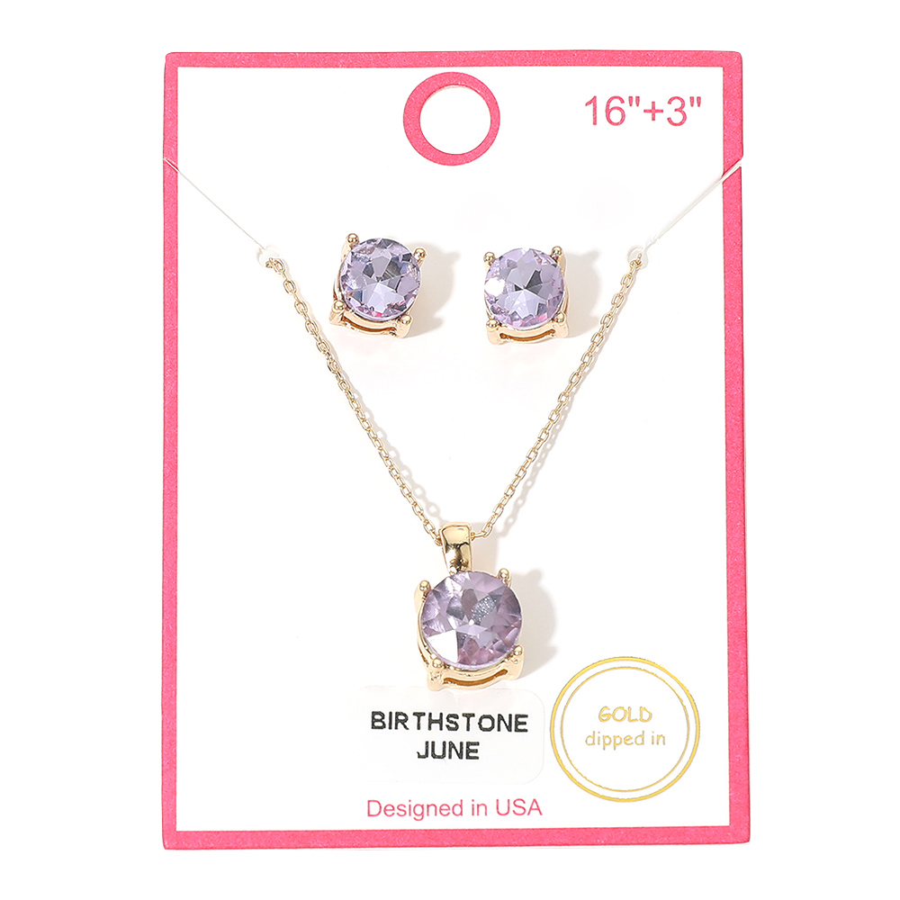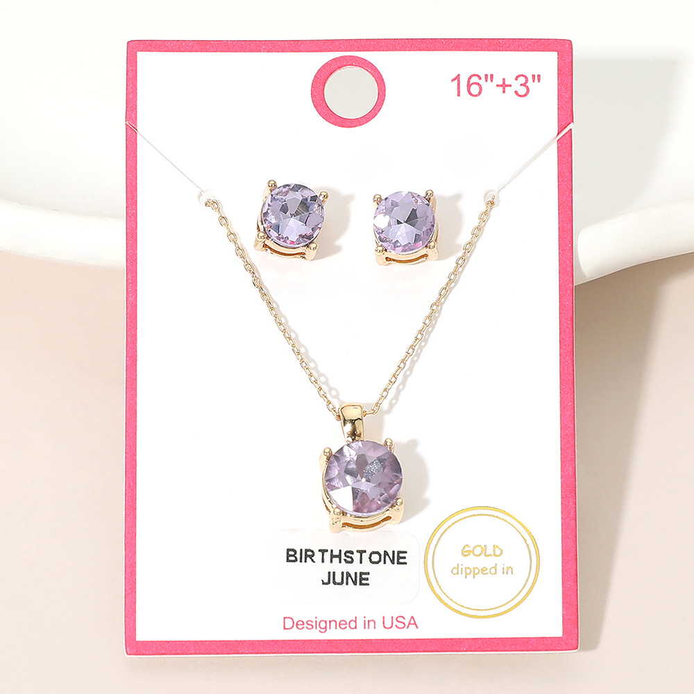 Details • Necklace Size : 16" + 3" L • Pendant Size : 0.4" X 0.6" • Earrings Size : 0.3" L • Coordinated birthstone jewelry set featuring a matching pendant necklace and stud earrings designed to celebrate June birthdays. Includes a delicate chain with extender and classic stud design, making it a thoughtful gift for everyday wear, layering, or special occasions. • Gold Dipped • Lead and Nickel Compliant