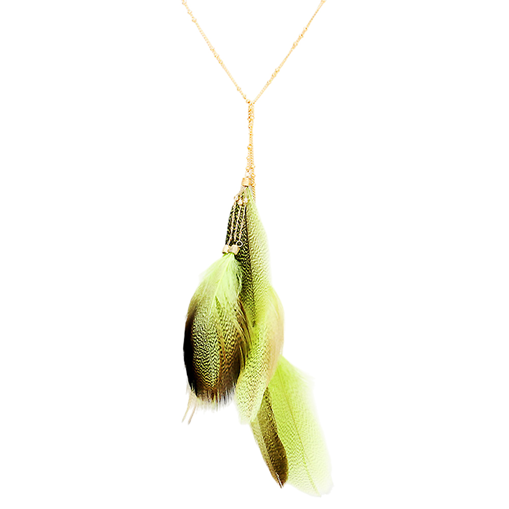 Layered Feather Pendant Long Necklace