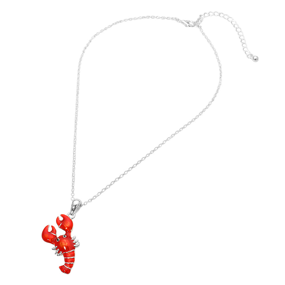 Details • Necklace Size : 16" + 3" • Pendant Size : 1" X 1.75" • Made in Vietnam • Lobster charm pendant necklace designed with a playful sea life silhouette and eye-catching details. A fun statement piece for beach boutiques, coastal gift shops, and summer collections, this necklace appeals to customers seeking novelty jewelry inspired by ocean themes and seaside style. • Lead and Nickel Compliant
