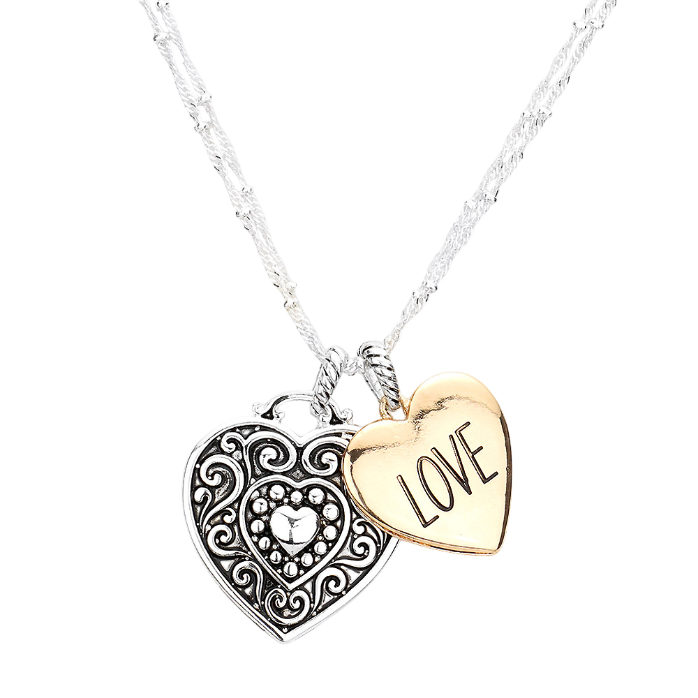 14K Gold Plated Mother of Pearl Heart Station Two Tone Oval Chain Necklace