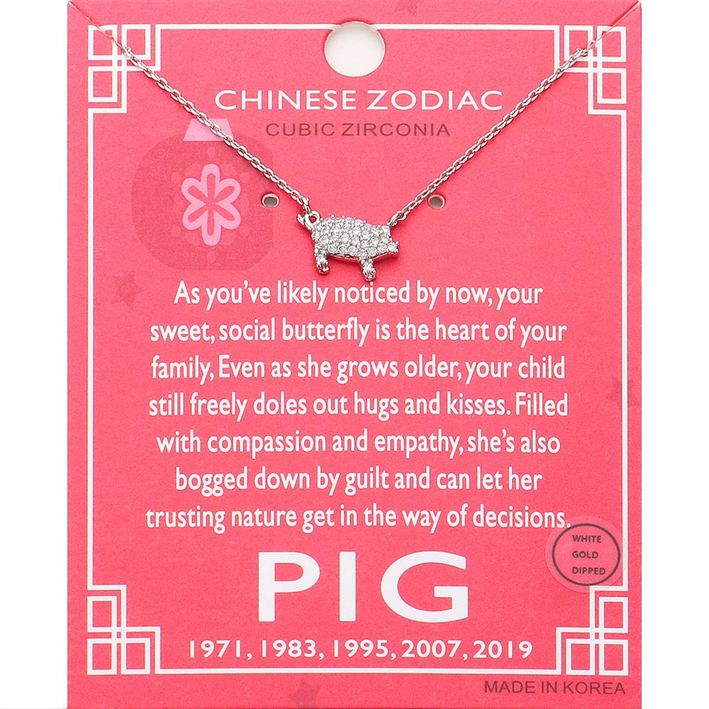 Lunar 12 Zodiac White Gold Dipped CZ Pig Pendant Necklace
