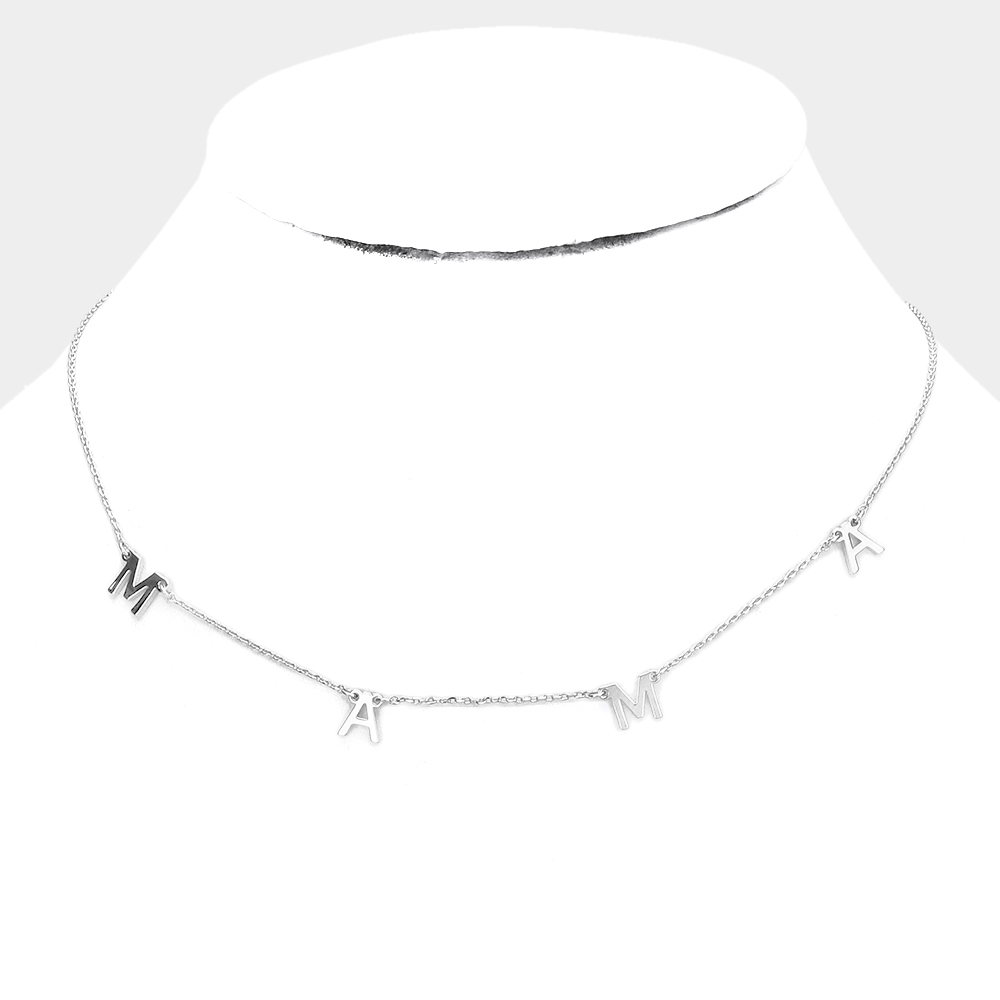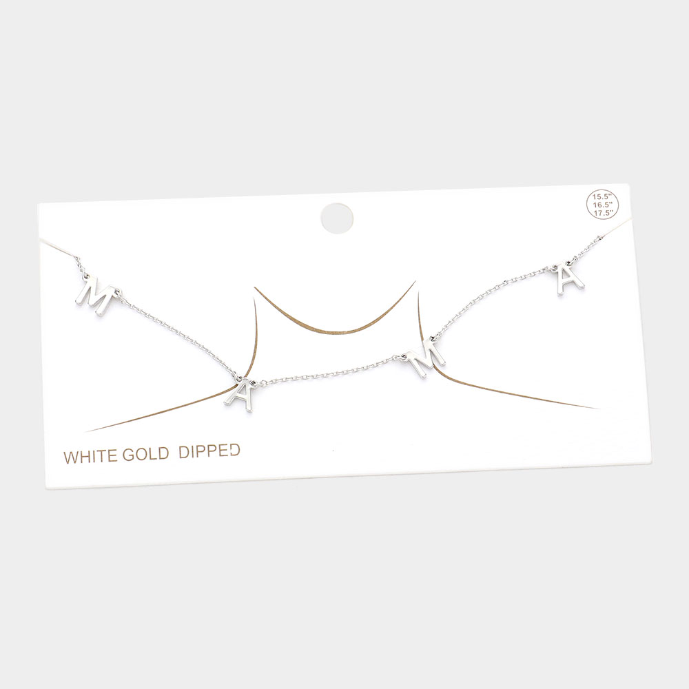 MAMA White Gold Dipped Metal Message Pendant Necklace
