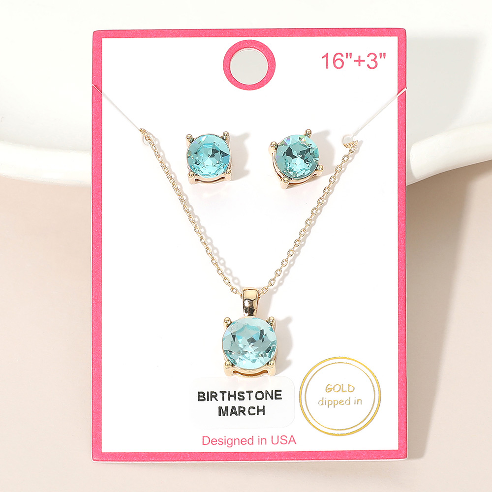 MARCH - Gold Dipped Birthstone Pendant Necklace MARCH - Gold Dipped Birthstone Pendant Necklace MARCH - Gold Dipped Birthstone Pendant Necklace