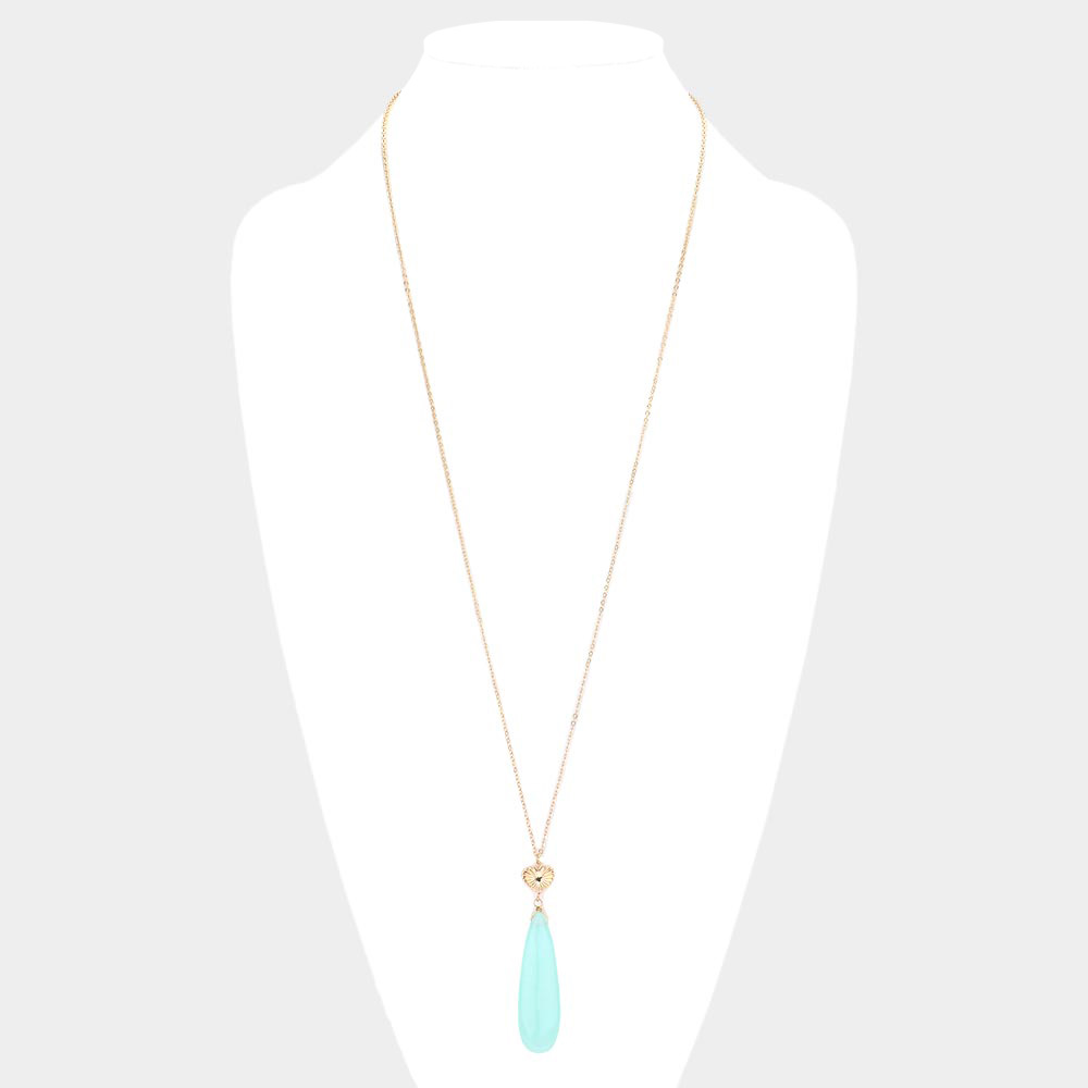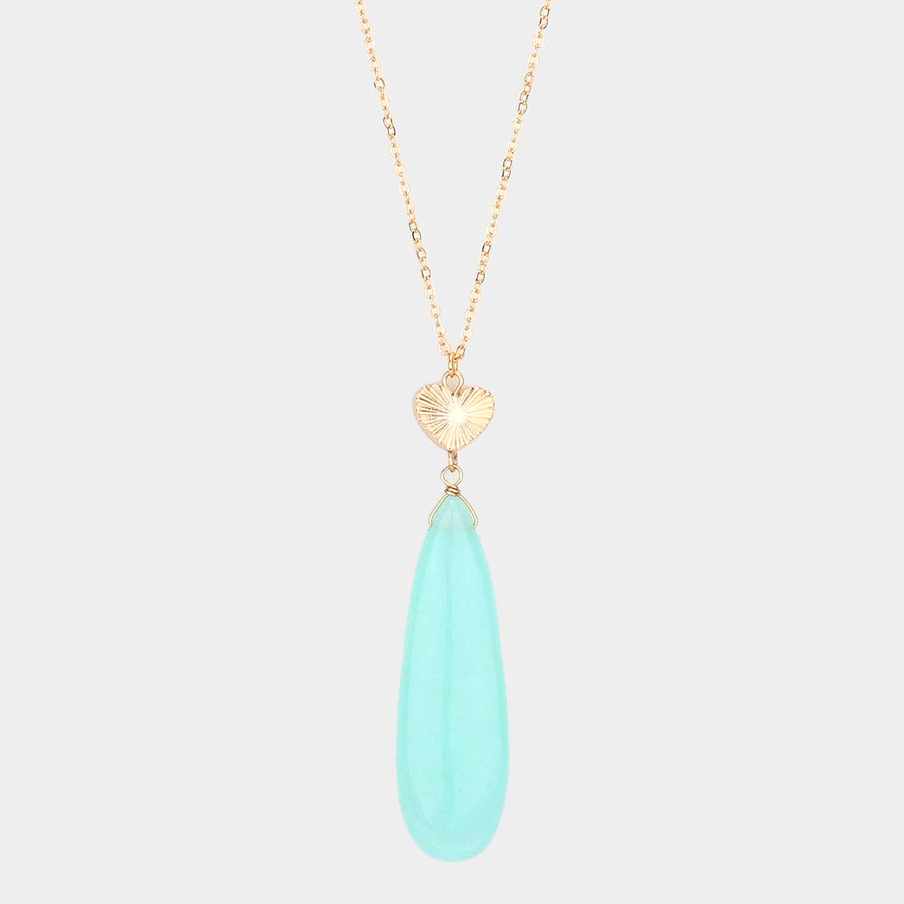 Metal Heart Teardrop Natural Stone Link Pendant Long Necklace