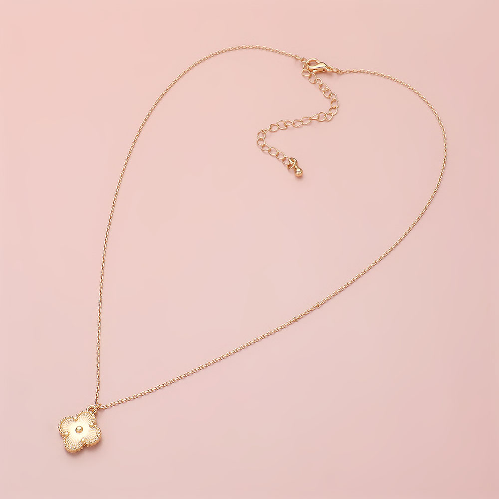 Mother Of Pearl Quatrefoil Pendant Necklace