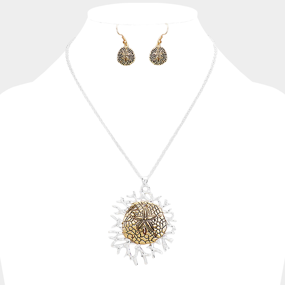 Sea Glass Sea Turtle Metal Seashell Sand Dollar Starfish Embellished Necklace