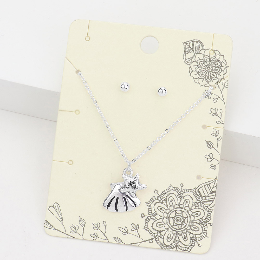 Enamel Wave Antique Metal Seashell Starfish Sand Dollar Link Dangle Earrings