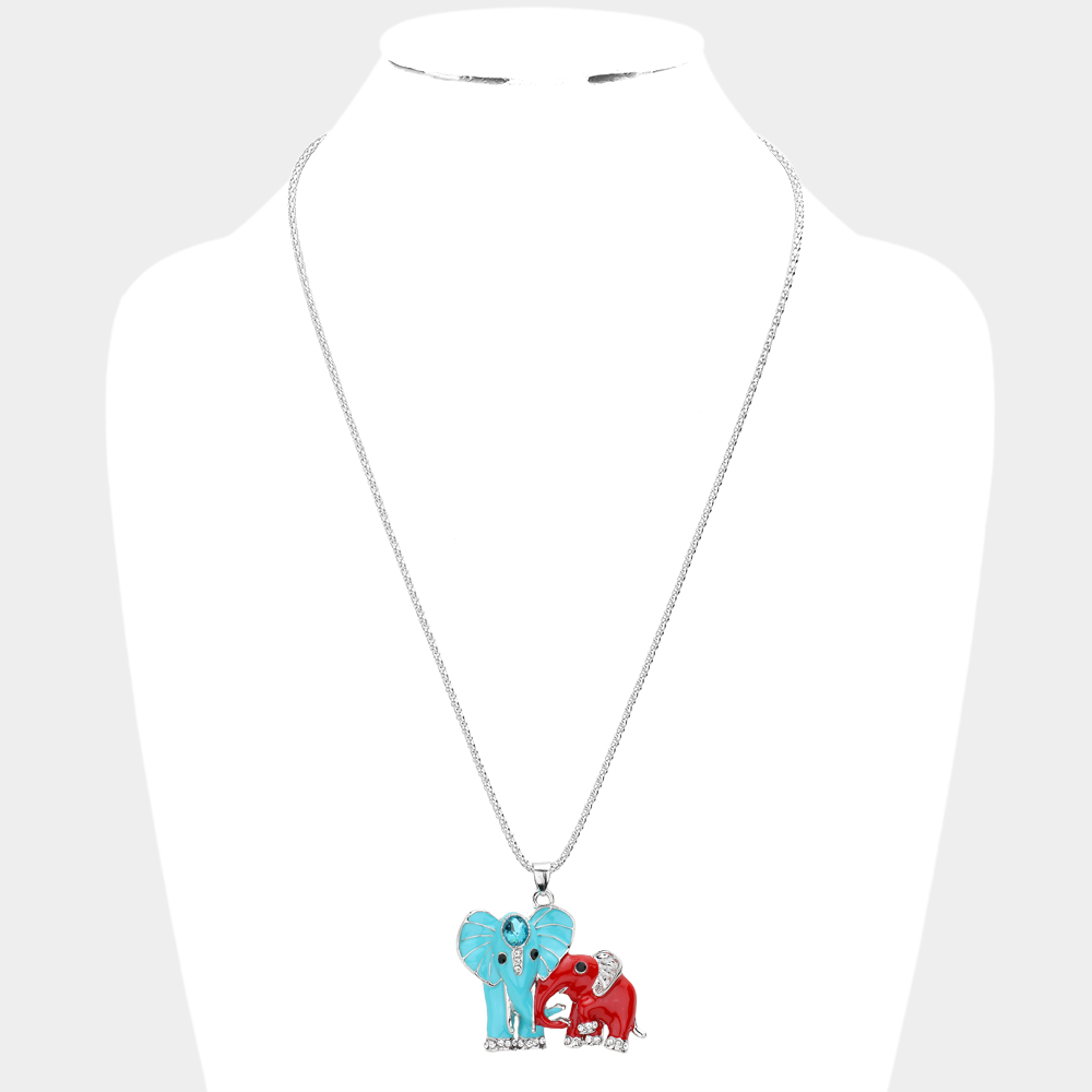 Oval Stone Accented Enamel Elephant Pendant Necklace