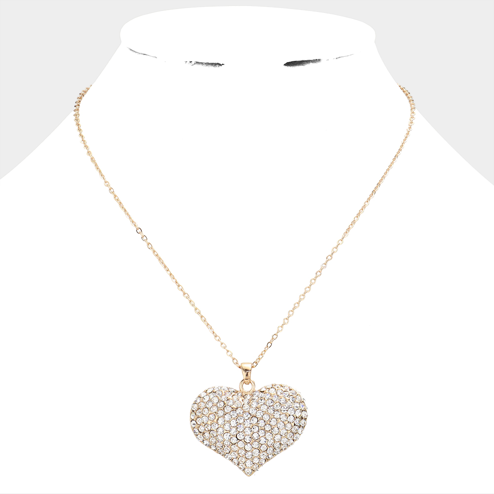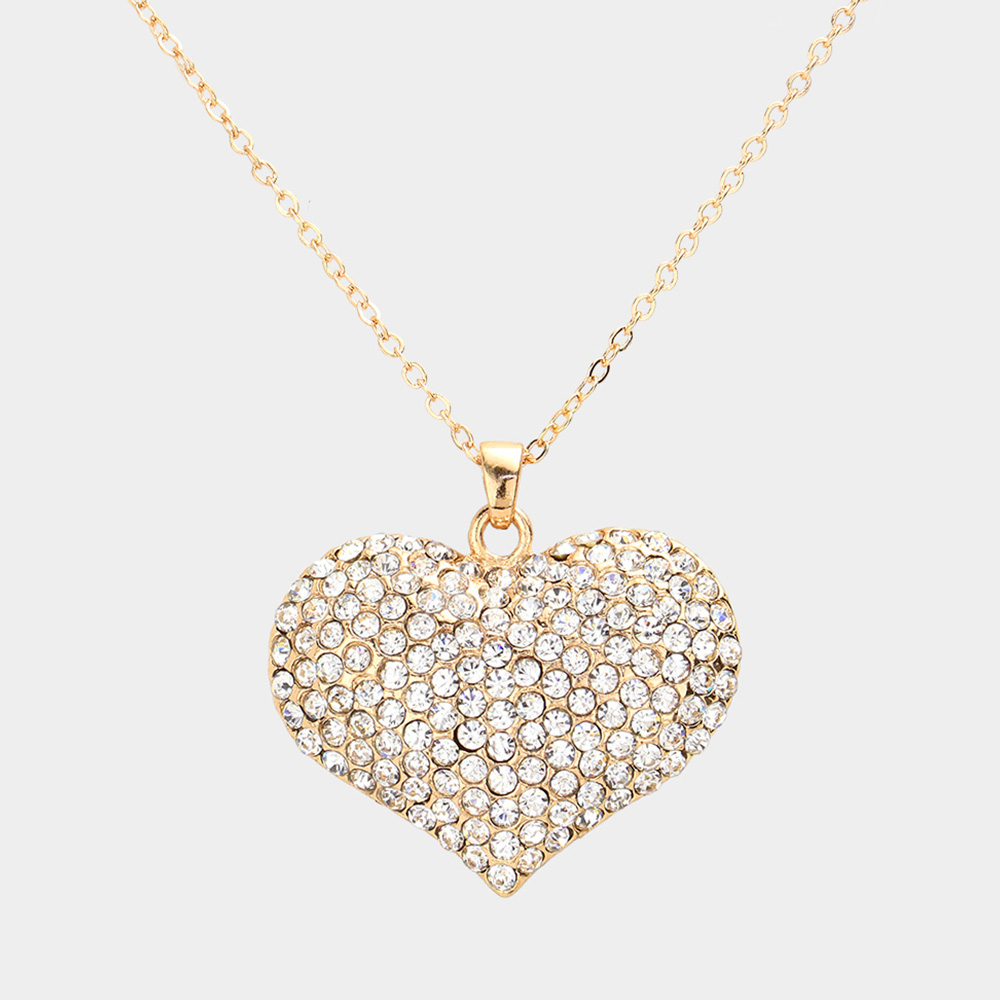 Pave Crystal Rhinestone Heart Pendant Necklace