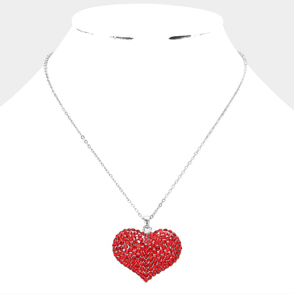 Pave Crystal Rhinestone Heart Pendant Necklace