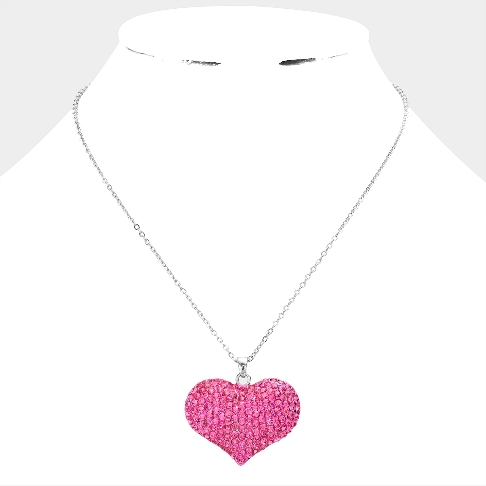 Pave Crystal Rhinestone Heart Pendant Necklace