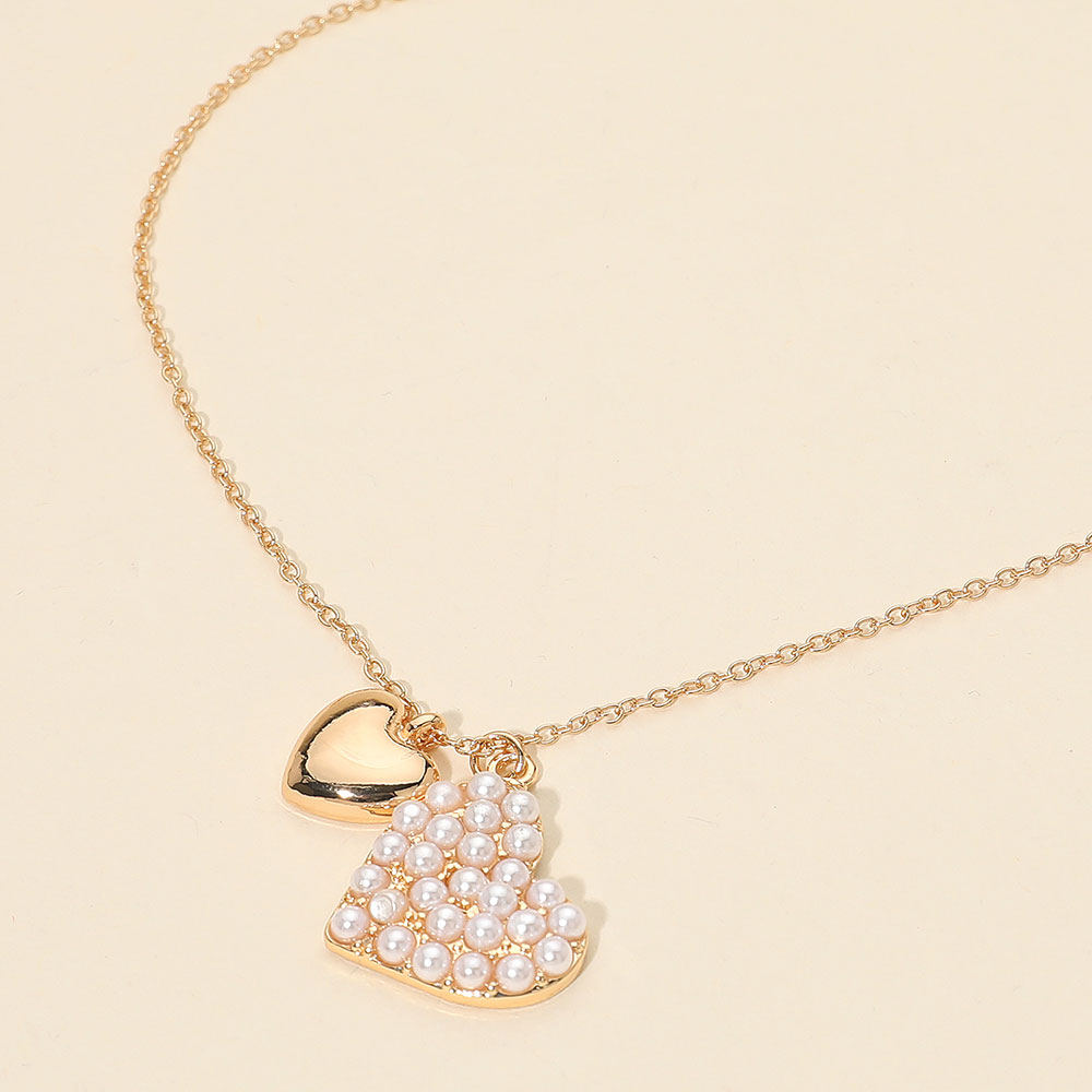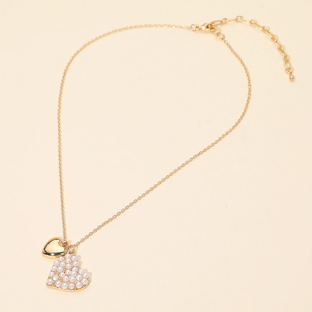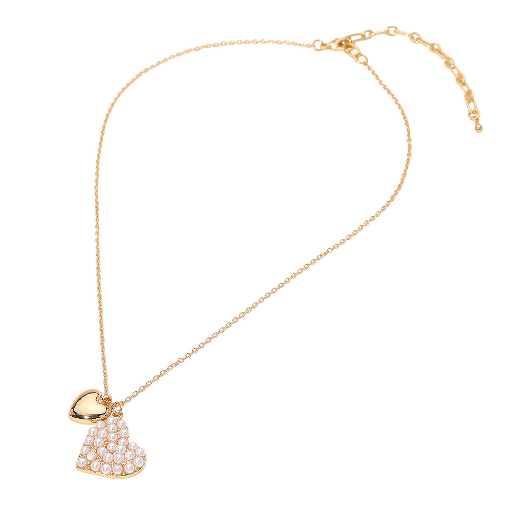 Details • Necklace Size : 16" + 3" L • Pendant Size : 0.8" X 0.8" • Celebrate romantic elegance with this double heart pendant necklace featuring a layered heart design paired with a delicate chain silhouette. Perfect for everyday wear or gifting, it adds a soft, meaningful accent that elevates casual outfits and complements dressier looks. • Lead and Nickel Compliant