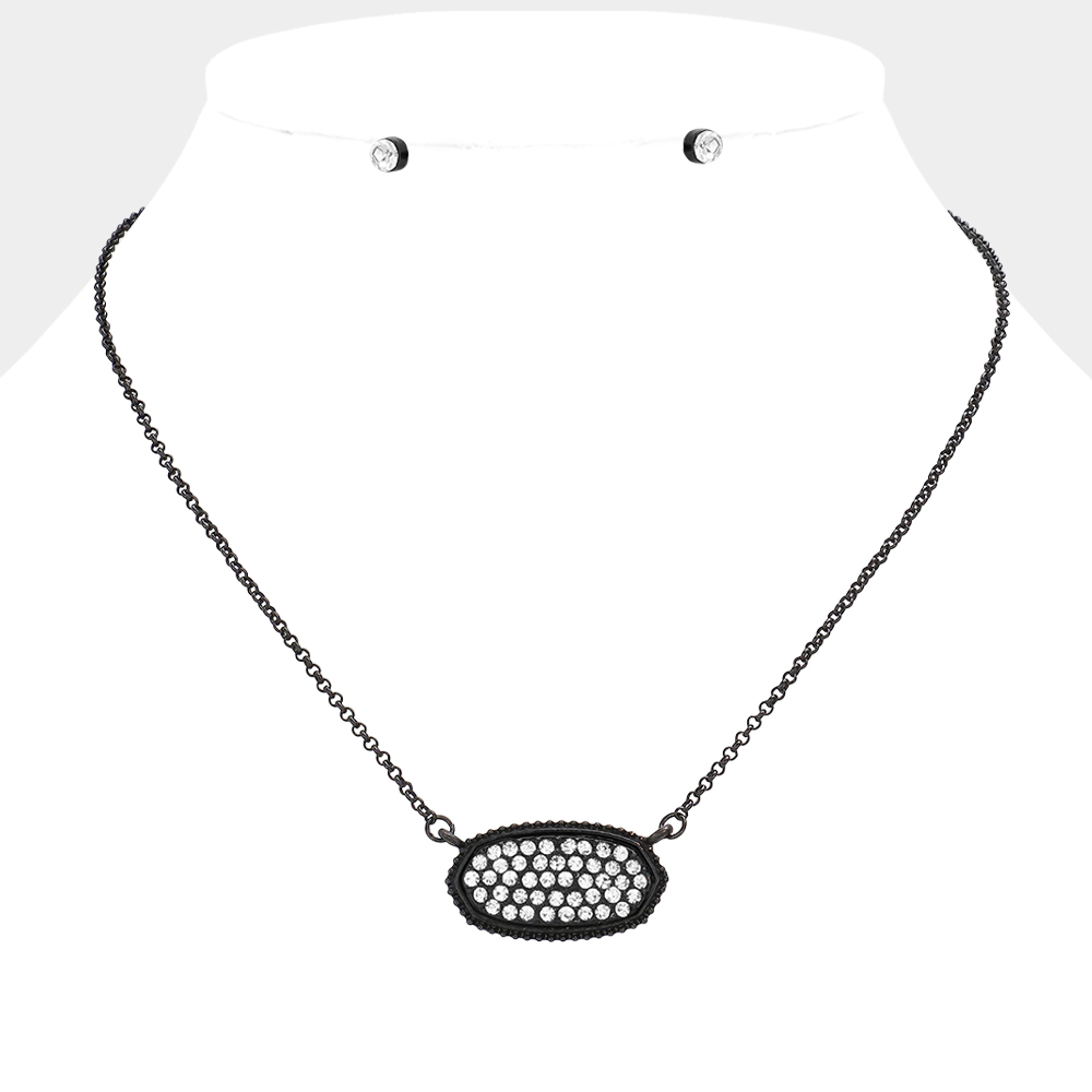 Rhinestone Embellished Hexagon Pendant Necklace