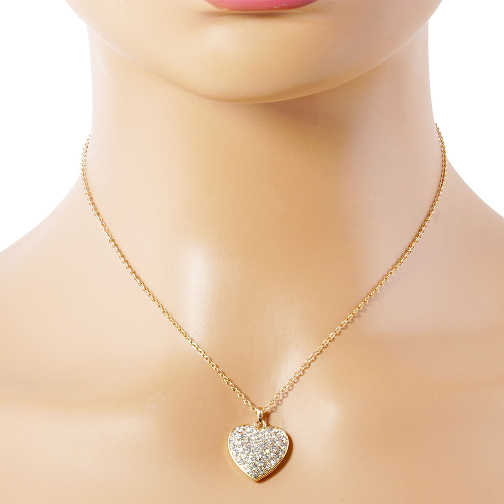 Details • Necklace Size : 15.5" + 2" L • Pendant Size : 0.75" X 0.8" • Charming heart pendant necklace featuring a sparkling rhinestone design on a delicate chain. A timeless accessory that adds subtle shine to everyday outfits and special occasions. Perfect as a gift or personal keepsake. • Lead and Nickel Compliant