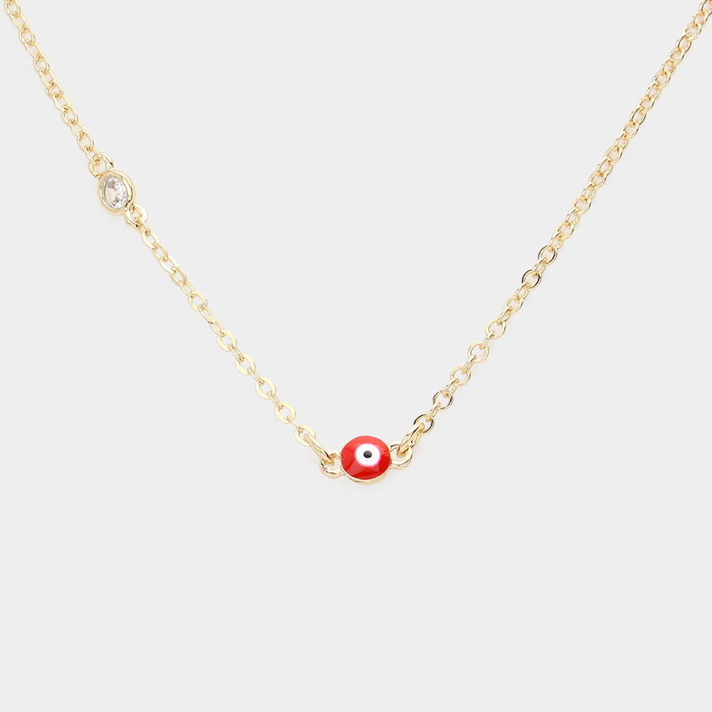 Evil Eye Round Stone Link Linear Dangle Earrings