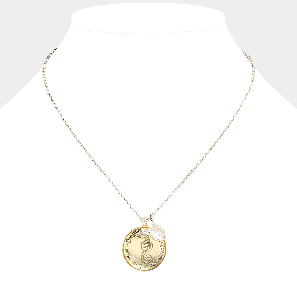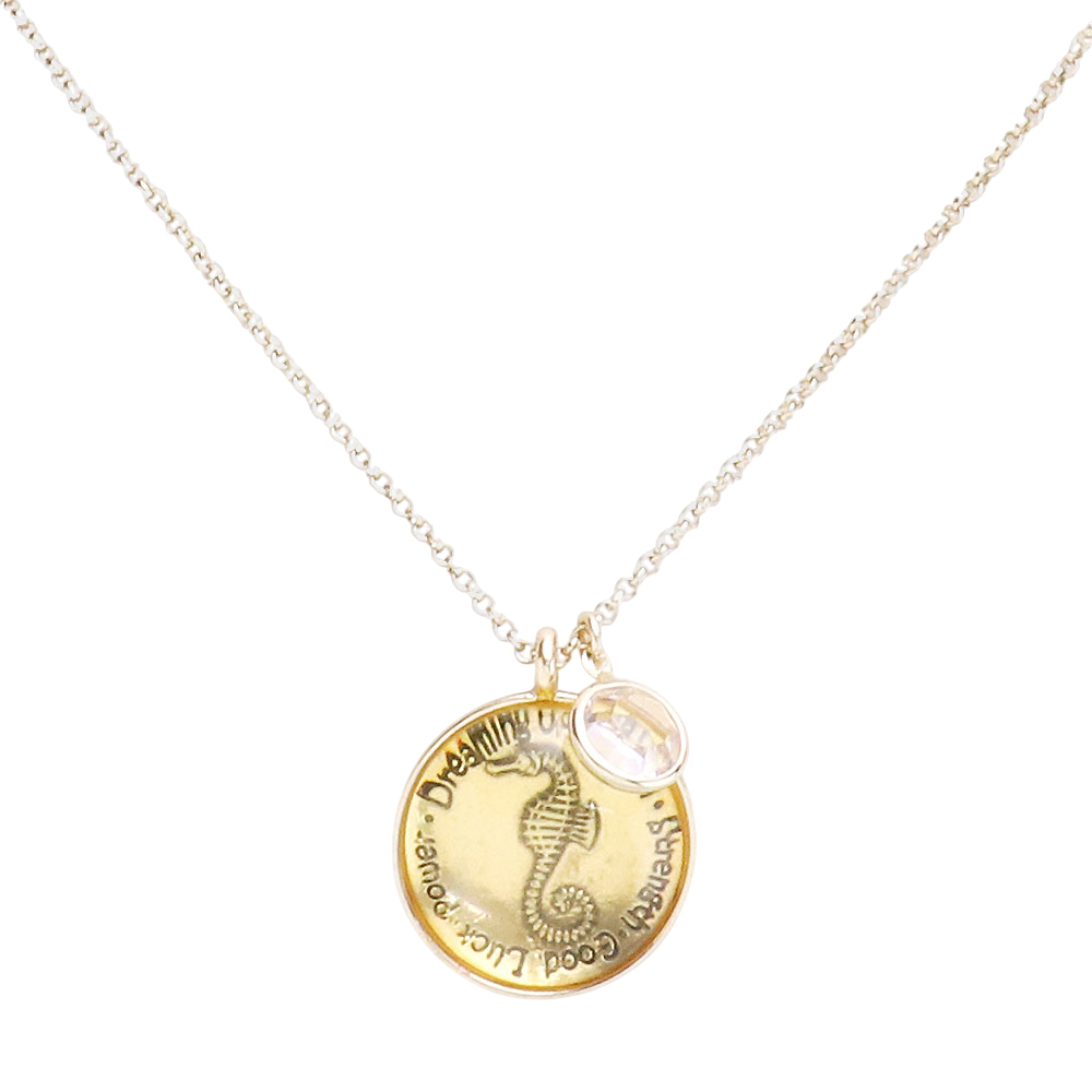 Metal Seahorse Triple Round Stone Charm Bracelet