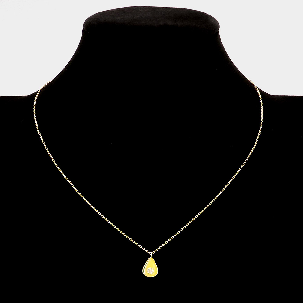 SECRET BOX_14K Gold Dipped CZ Embellished Enamel Avocado Pendant Necklace