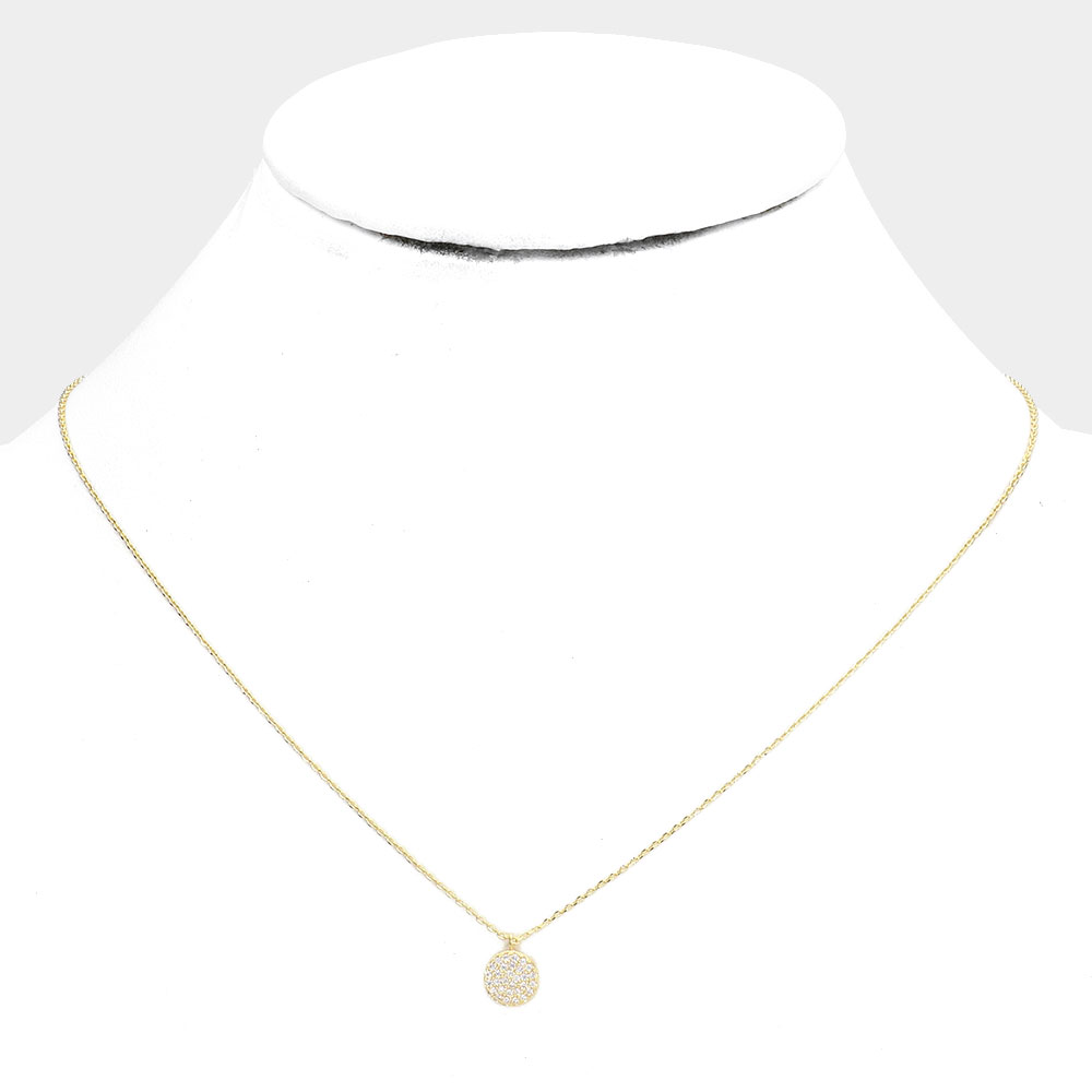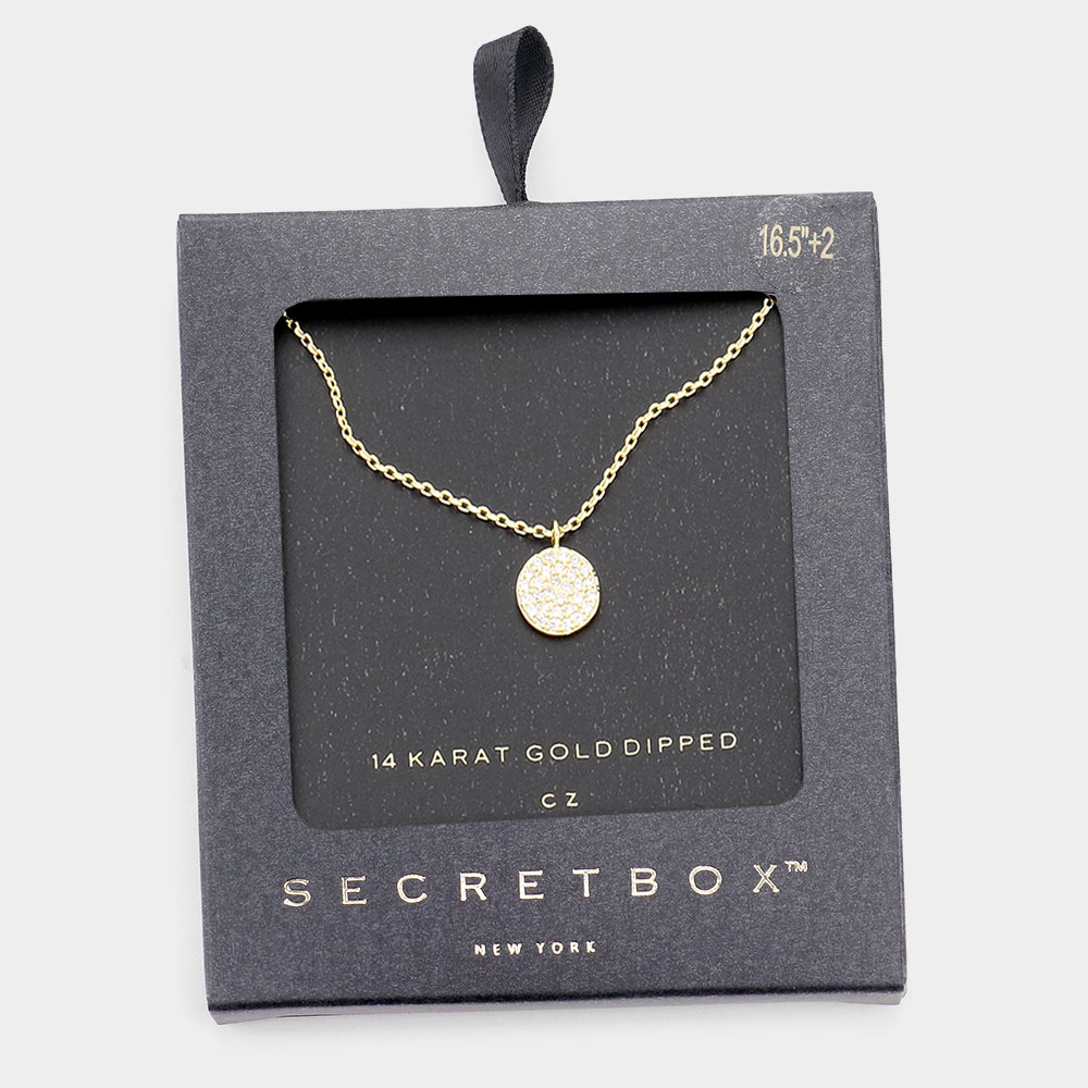 Secret Box _ 14K Gold Dipped CZ Round Pendant Necklace