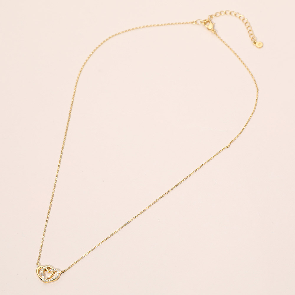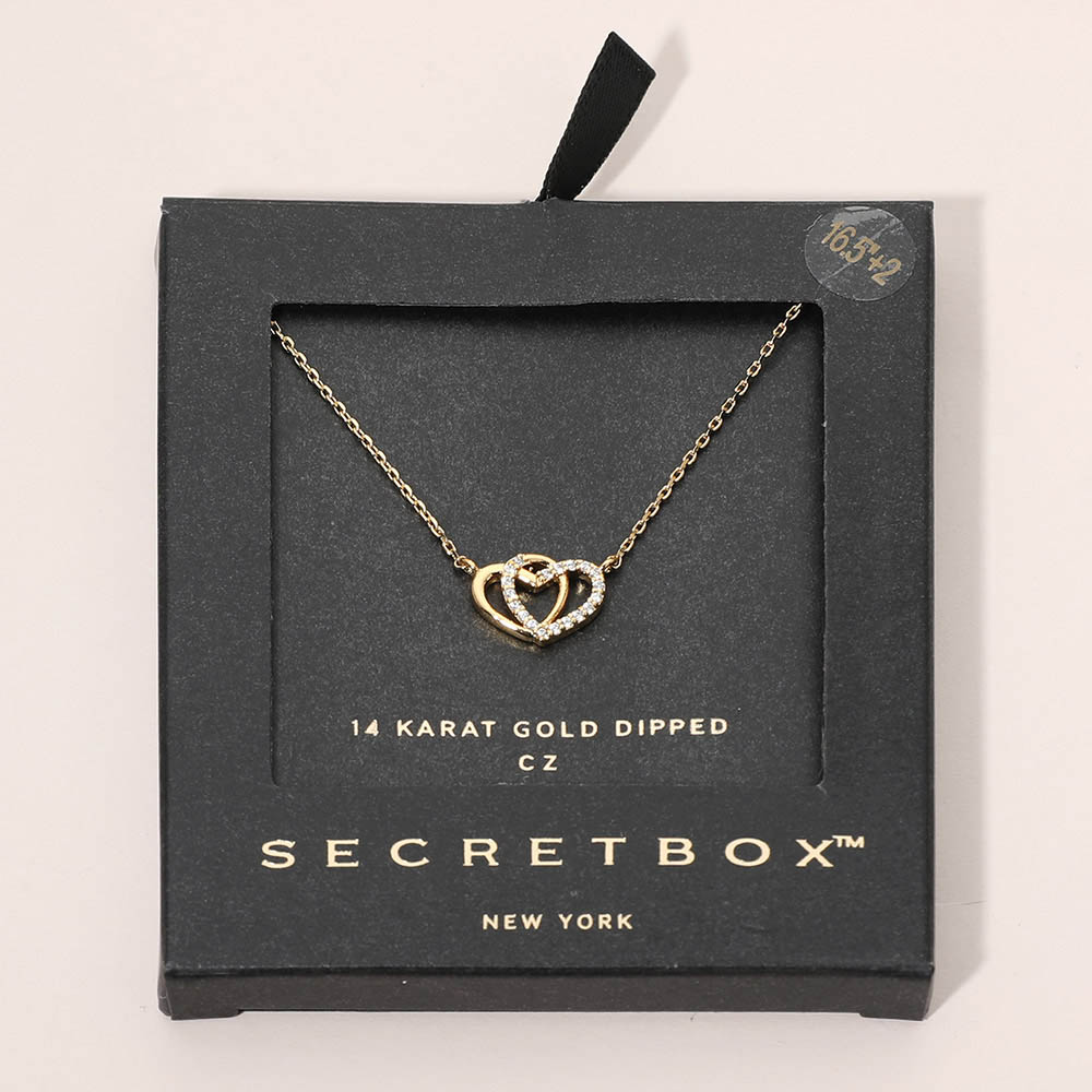 SECRET BOX_14K Gold Dipped CZ Stone Paved Double Heart Pendant Necklace SECRET BOX_14K Gold Dipped CZ Stone Paved Double Heart Pendant Necklace SECRET BOX_14K Gold Dipped CZ Stone Paved Double Heart Pendant Necklace