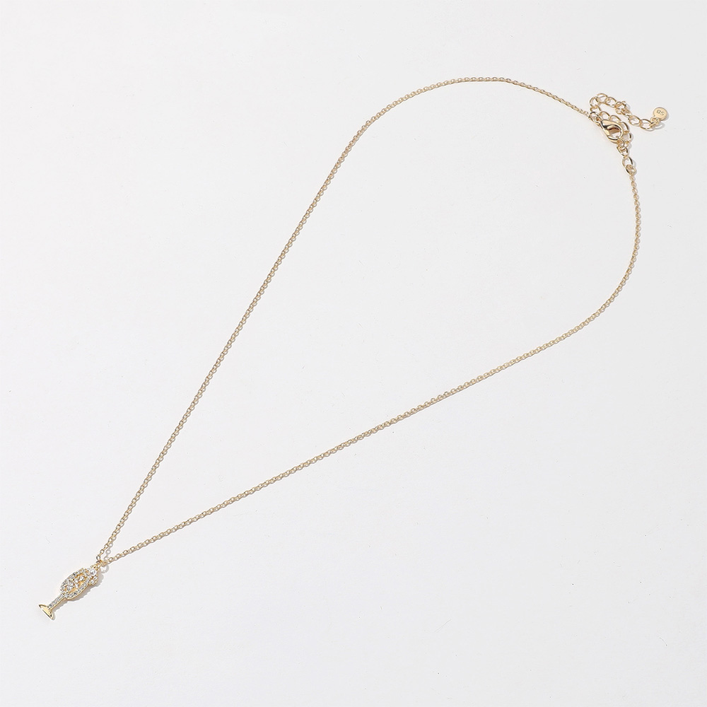 Details • Necklace Size : 16.5" + 2" L • Pendant Size : 0.2" X 0.8" • Toast to elegance with this 14k gold dipped CZ champagne glass necklace. Sparkling with finely cut cubic zirconia, this charming pendant adds a festive yet refined touch, making it a perfect accessory for celebrations, special occasions, or stylish everyday wear. • Gold Dipped • CZ Cubic Zirconia