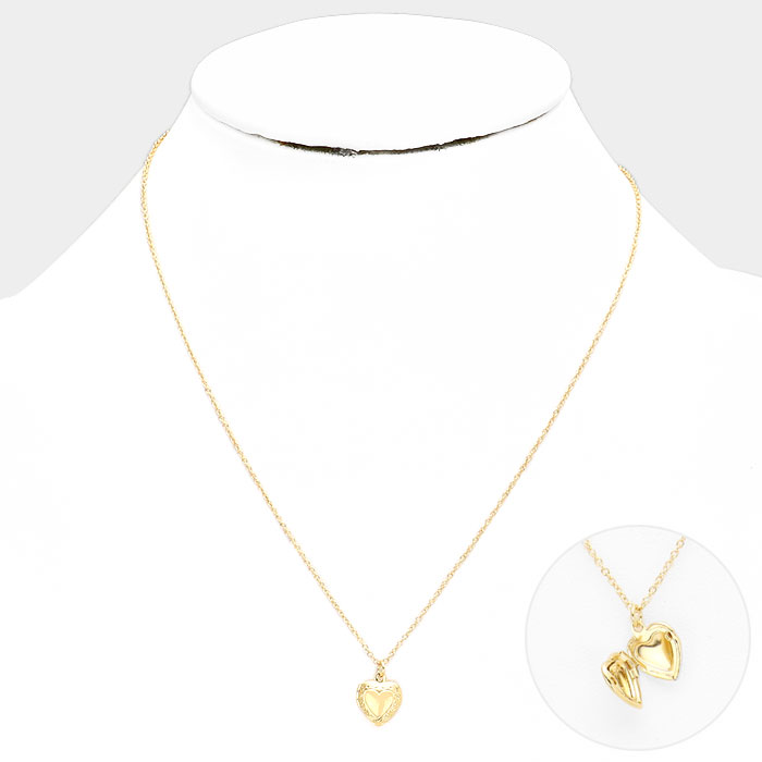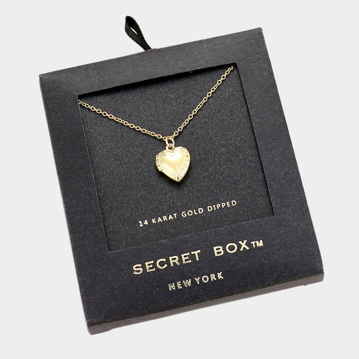 Secret Box _ 14K Gold Dipped Heart Locket Pendant Necklace
