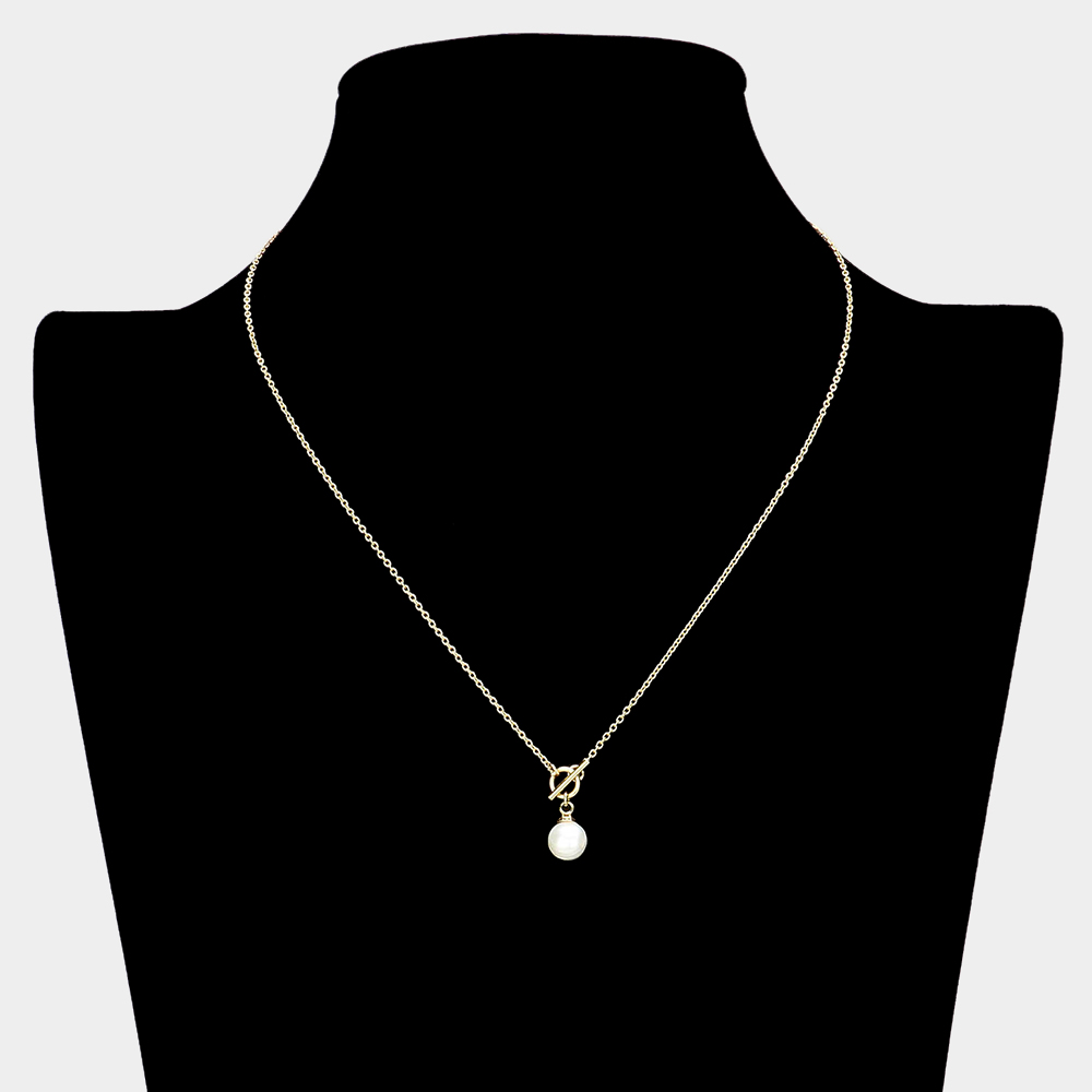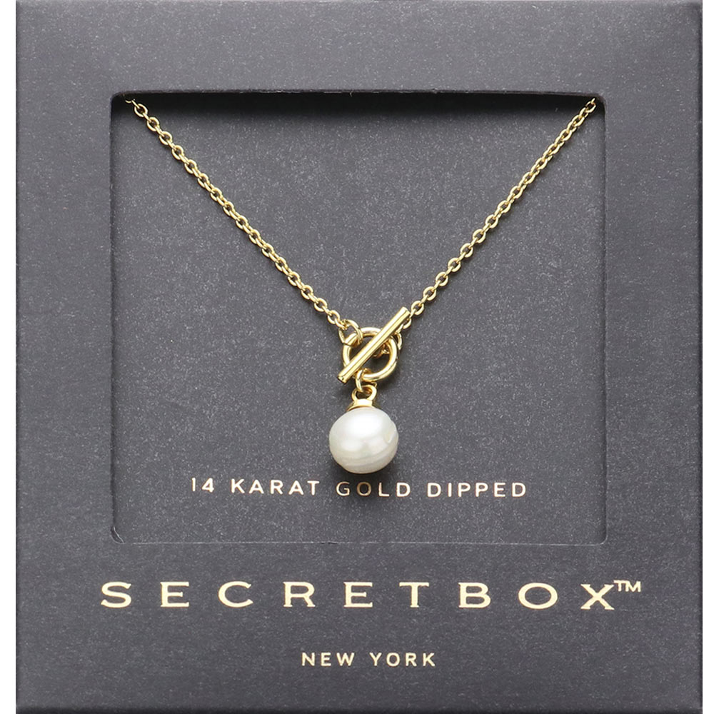 SECRET BOX_14K Gold Dipped Pearl Toggle Pendant Necklace