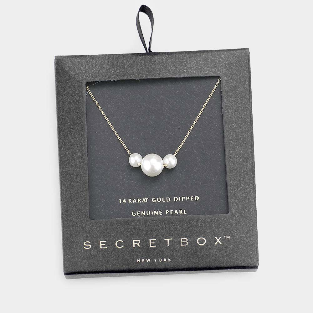 SECRET BOX_14K Gold Dipped Triple Genuine Pearl Pendant Necklace SECRET BOX_14K Gold Dipped Triple Genuine Pearl Pendant Necklace SECRET BOX_14K Gold Dipped Triple Genuine Pearl Pendant Necklace