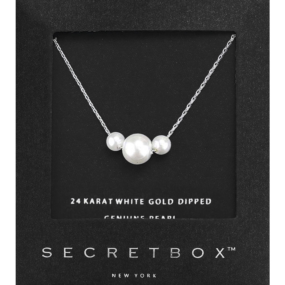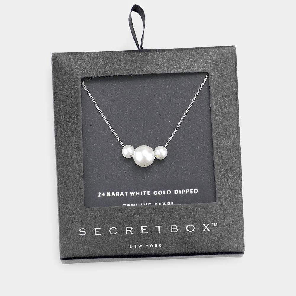 SECRET BOX_24K White Gold Dipped Triple Genuine Pearl Pendant Necklace SECRET BOX_24K White Gold Dipped Triple Genuine Pearl Pendant Necklace SECRET BOX_24K White Gold Dipped Triple Genuine Pearl Pendant Necklace