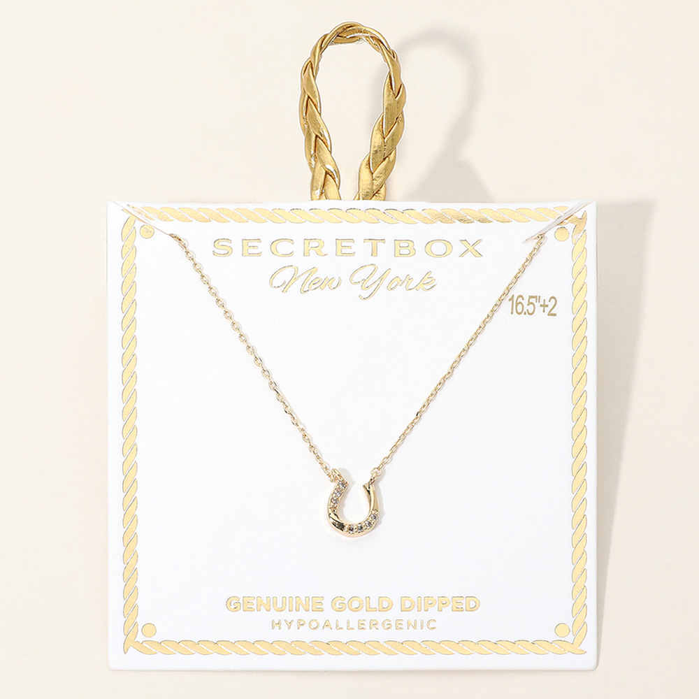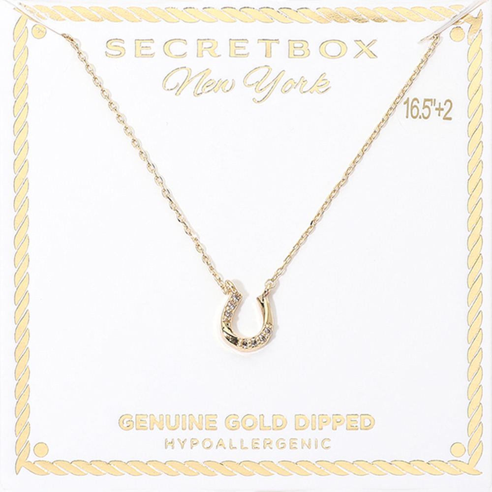 SECRET BOX_Genuine Gold Dipped Hypoallergenic Stone Pave Horseshoe Pendant Necklace