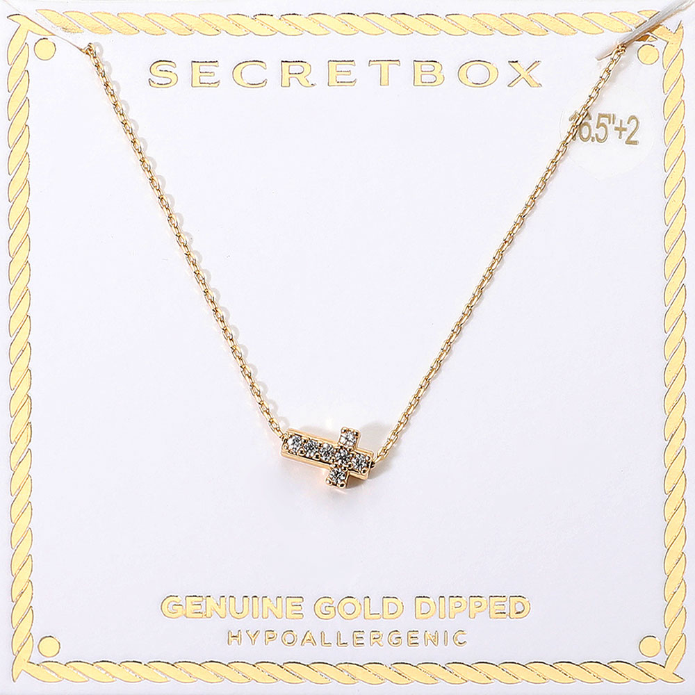 SECRET BOX_Genuine Gold Dipped Hypoallergenic Stone Paved Cross Pendant Necklace SECRET BOX_Genuine Gold Dipped Hypoallergenic Stone Paved Cross Pendant Necklace
