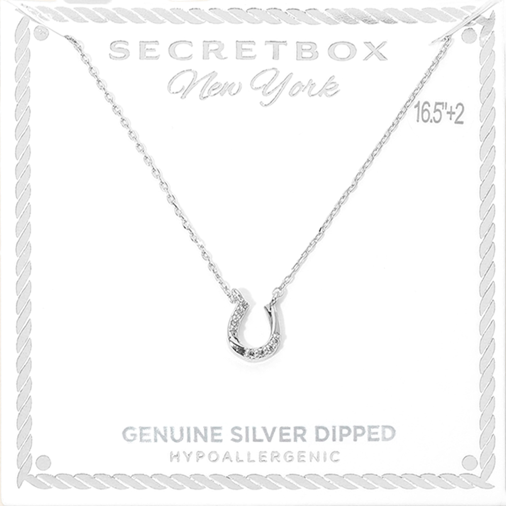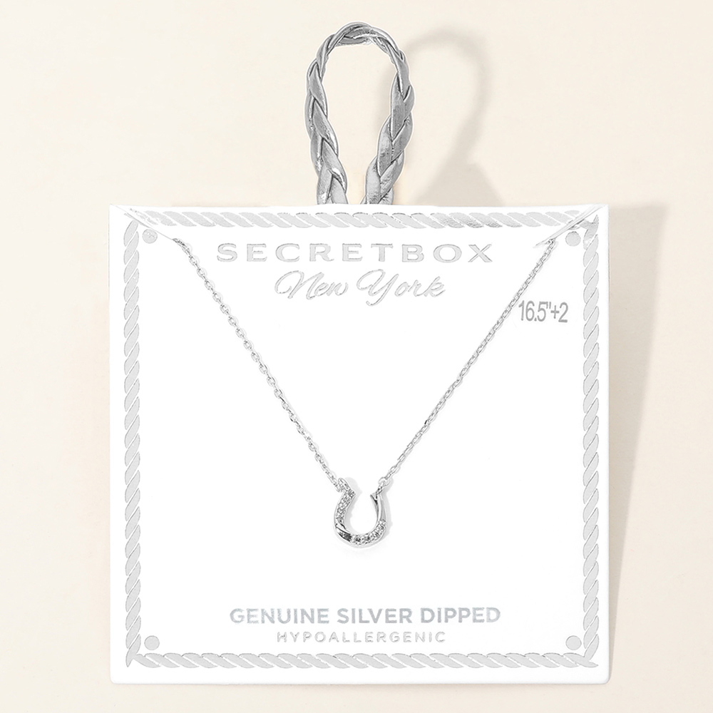 SECRET BOX_Genuine Silver Dipped Hypoallergenic Stone Pave Horseshoe Pendant Necklace