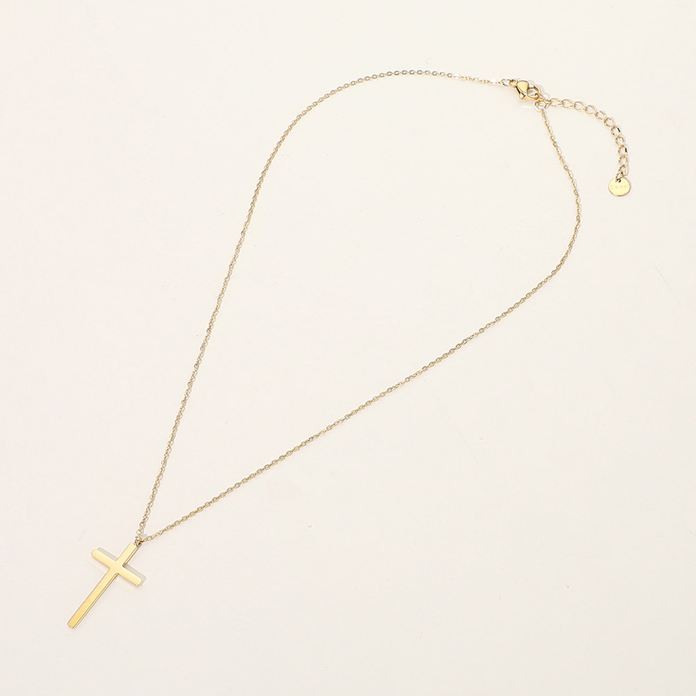 Details • Necklace Size : 15.5" + 2" L • Pendant Size : 0.6" X 1" • This minimal cross pendant chain necklace features a sleek, timeless silhouette designed for everyday wear or meaningful gifting. The simple cross charm hangs from a delicate chain with an adjustable fit, making it easy to layer or wear solo. A versatile accessory that adds subtle elegance and symbolic style to casual outfits, workwear, or special occasions. • Hypoallergenic • Stainless Steel