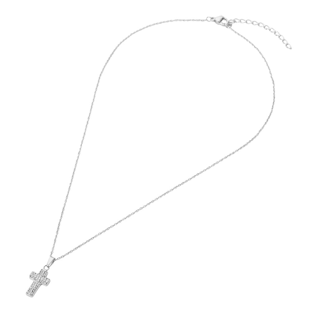 • Elegant stainless steel pavĂ© cross pendant necklace designed for timeless everyday wear. Features a classic silhouette with sparkling detail that adds subtle shine to any outfit. Ideal for layering or solo styling, perfect for boutiques, faith-inspired collections, and gift-ready jewelry selections.