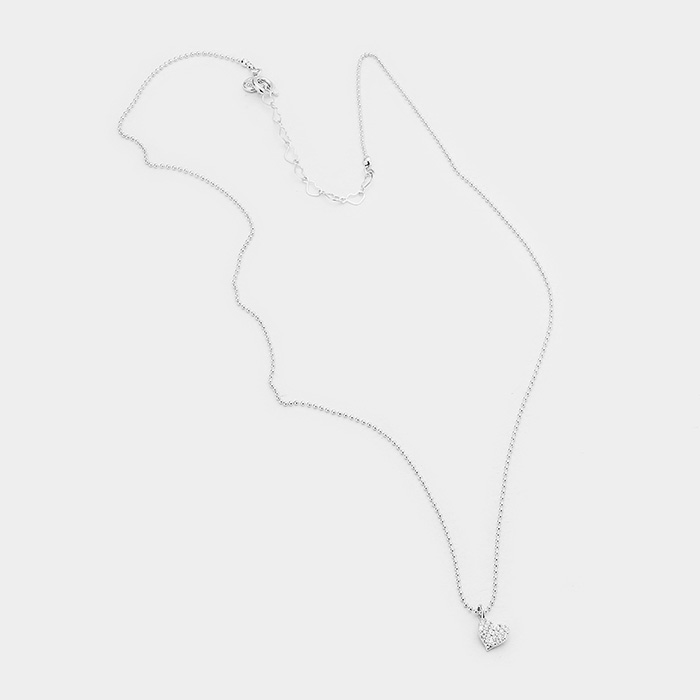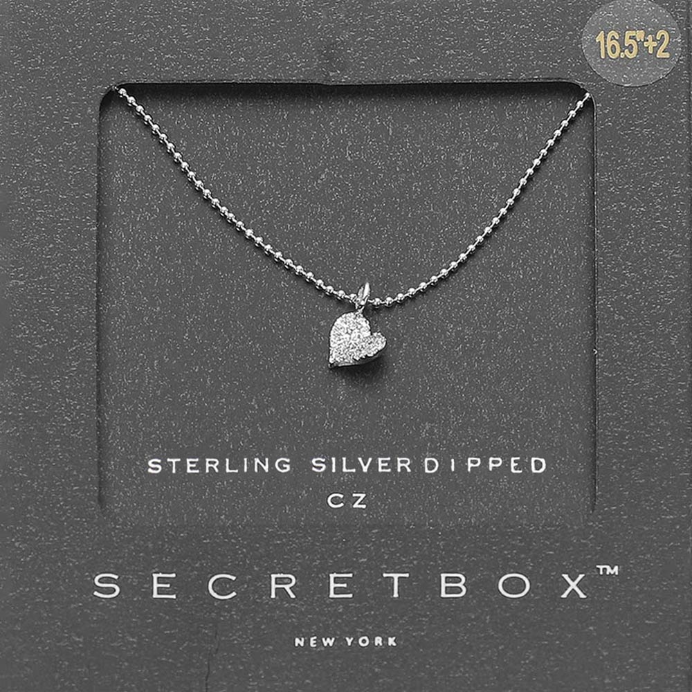 Details • Necklace Size : 16.5" + 2" L • Pendant Size : 0.25" X 0.25" • Charming heart pendant necklace featuring a sparkling clustered-cz stone design that adds a touch of refined shine. Its delicate chain and petite pendant make it perfect for daily wear, layering, or gifting, offering a timeless accent that enhances any style with subtle elegance. • CZ Cubic Zirconia • Sterling Silver Dipped