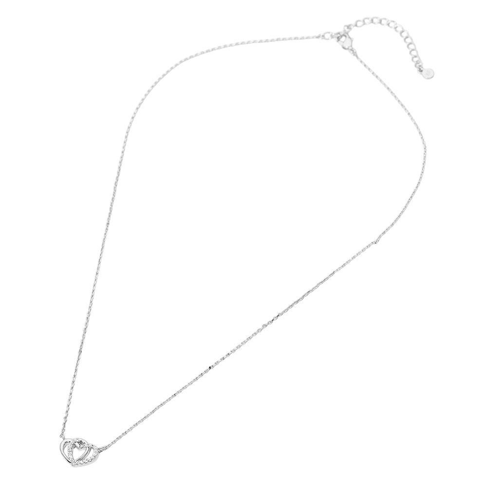 SECRET BOX_Sterling Silver Dipped CZ Stone Paved Double Heart Pendant Necklace SECRET BOX_Sterling Silver Dipped CZ Stone Paved Double Heart Pendant Necklace SECRET BOX_Sterling Silver Dipped CZ Stone Paved Double Heart Pendant Necklace