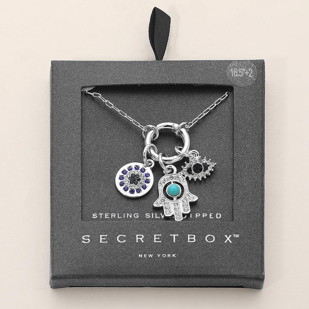 SECRET BOX_Sterling Silver Dipped Hamsa Hand Evil Eye Round Charm Pendant Necklace SECRET BOX_Sterling Silver Dipped Hamsa Hand Evil Eye Round Charm Pendant Necklace SECRET BOX_Sterling Silver Dipped Hamsa Hand Evil Eye Round Charm Pendant Necklace