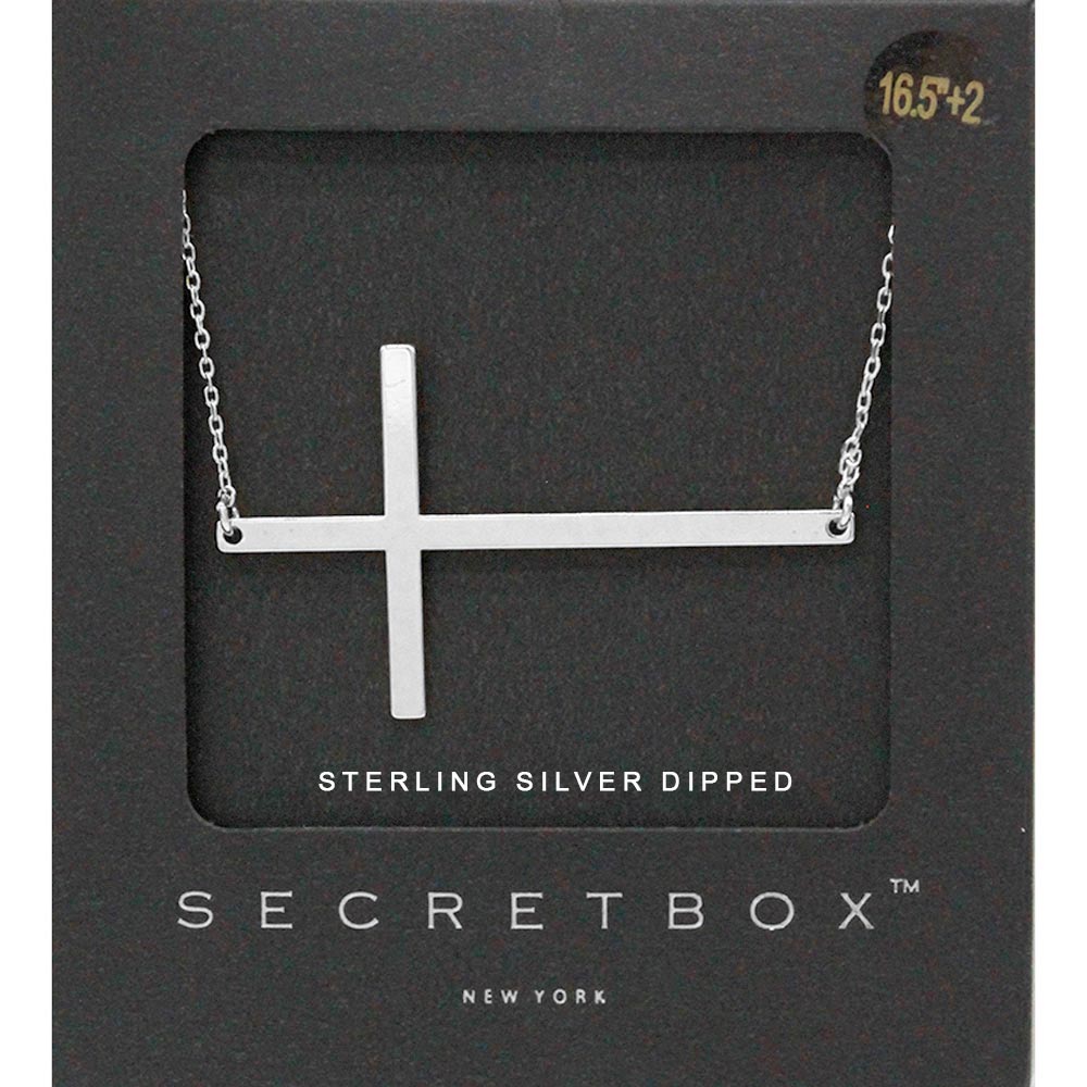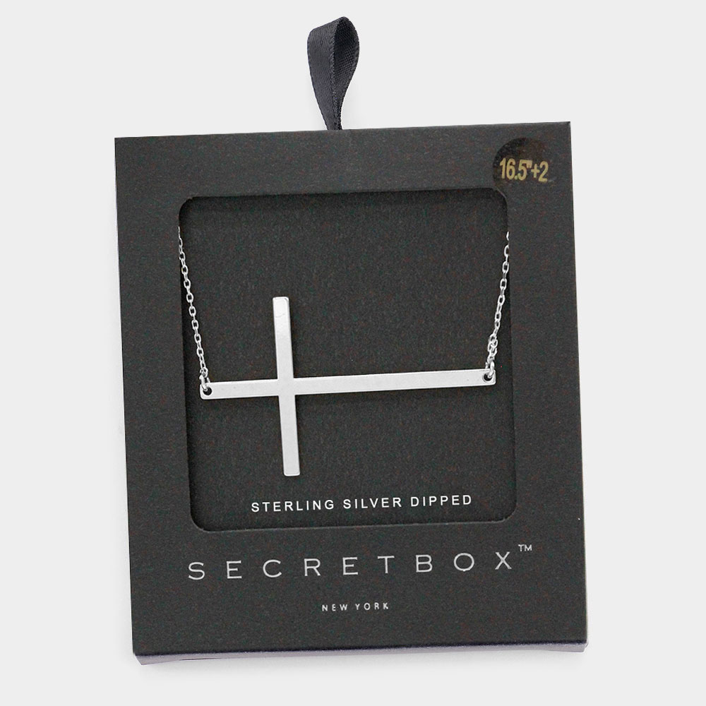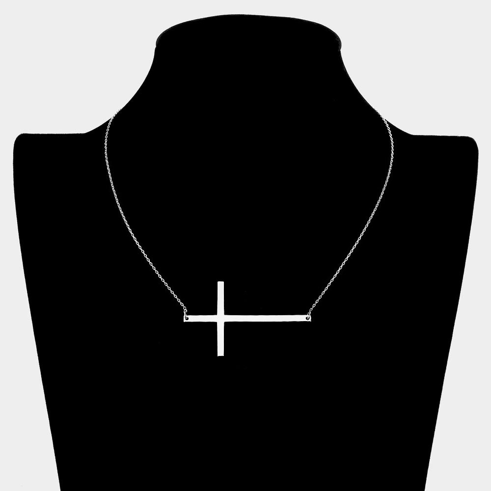 Details • Necklace Size : 16.5" + 2" L • Pendant Size : 1.8" X 1.1" • Elegant sideways cross pendant necklace on a delicate chain, offering a sleek and modern take on a classic symbol. Perfect for everyday wear, layering, or meaningful gifting with a minimalist spiritual touch. • Lead and Nickel Compliant • Sterling Silver Dipped