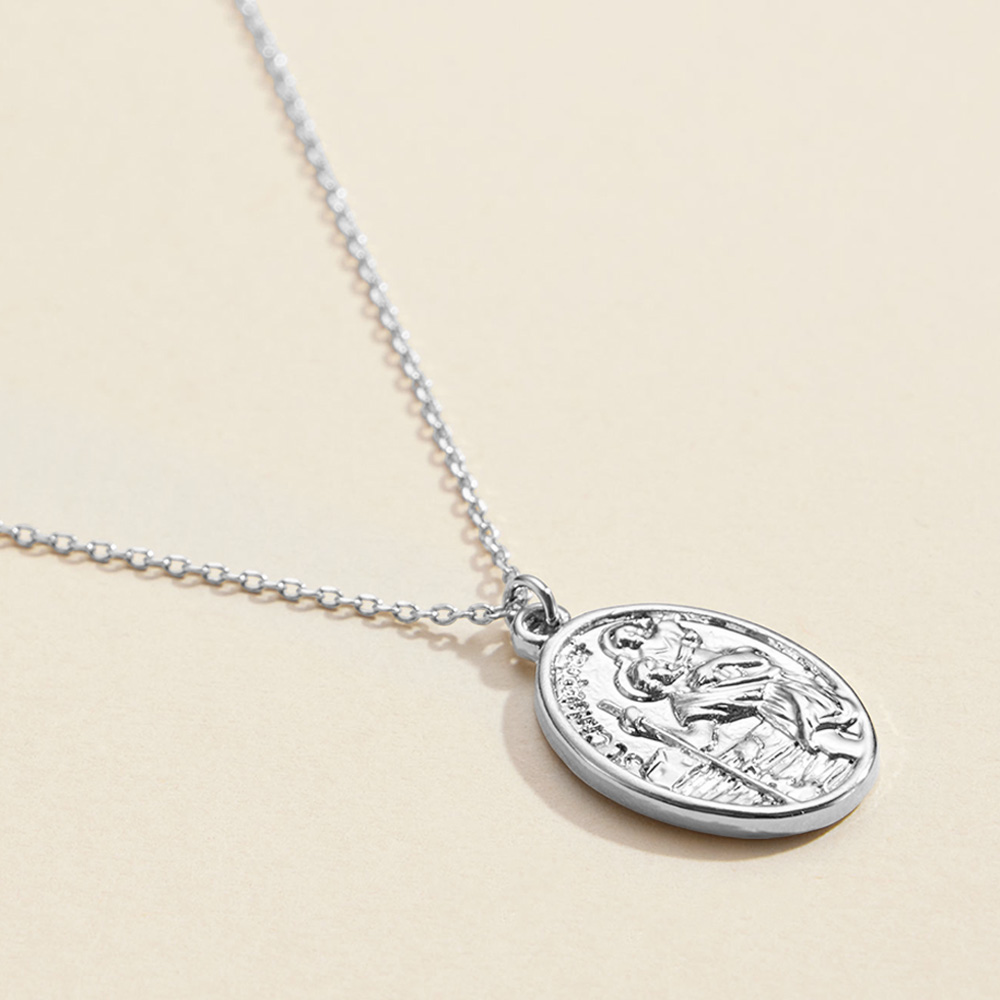 Semi Fine Collection - 18K White Gold Dipped Pray For Us Message Oval Coin Pendant Necklace