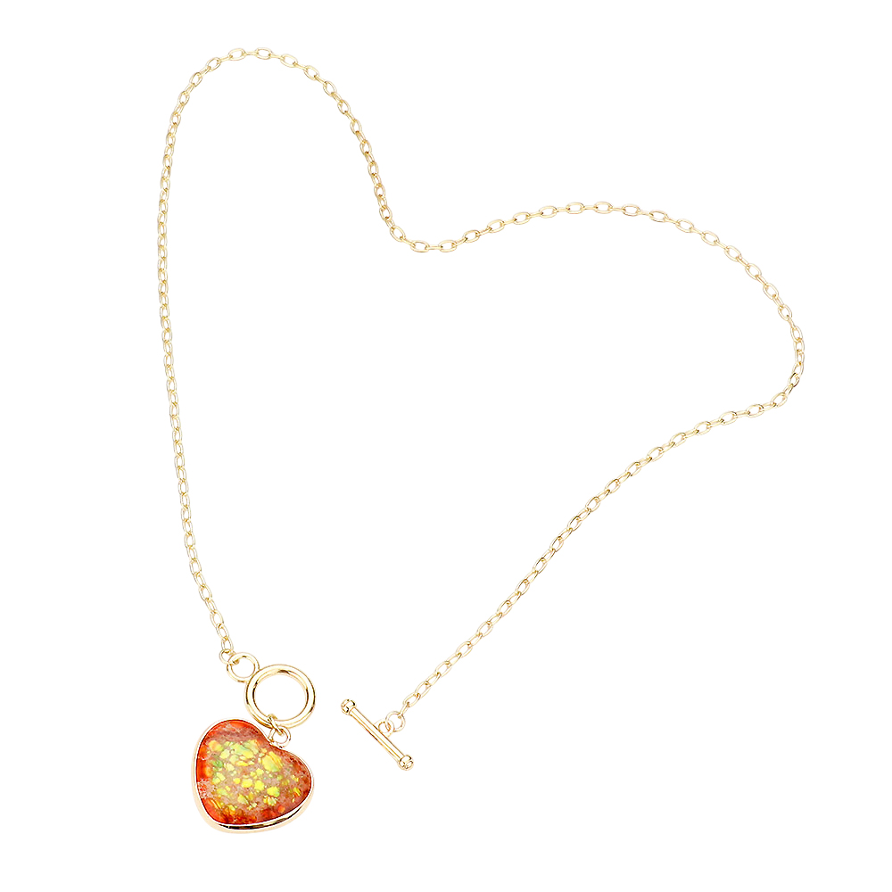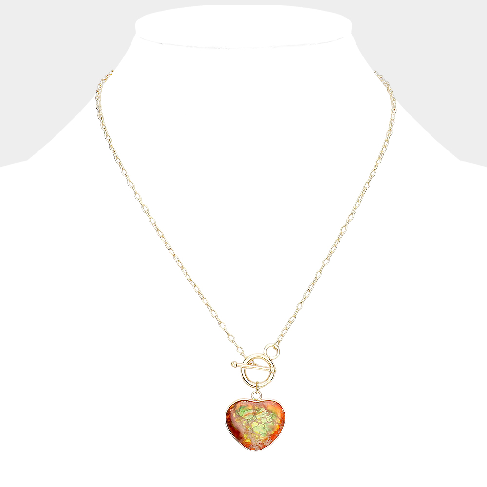 Enamel Stone Paved Metal Heart Pearl Charm Station Necklace